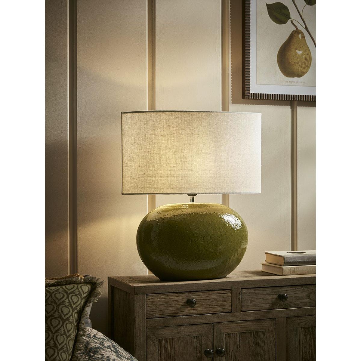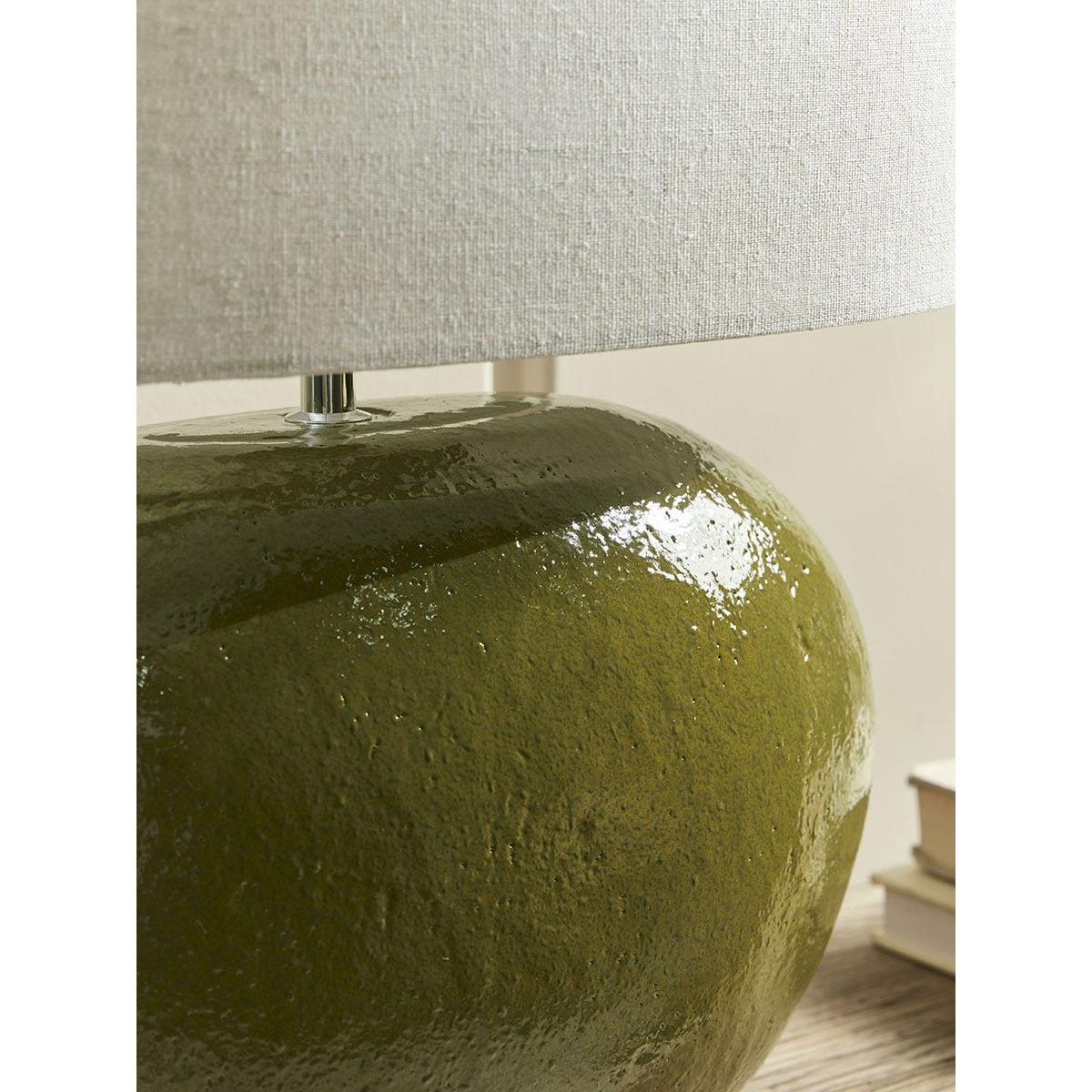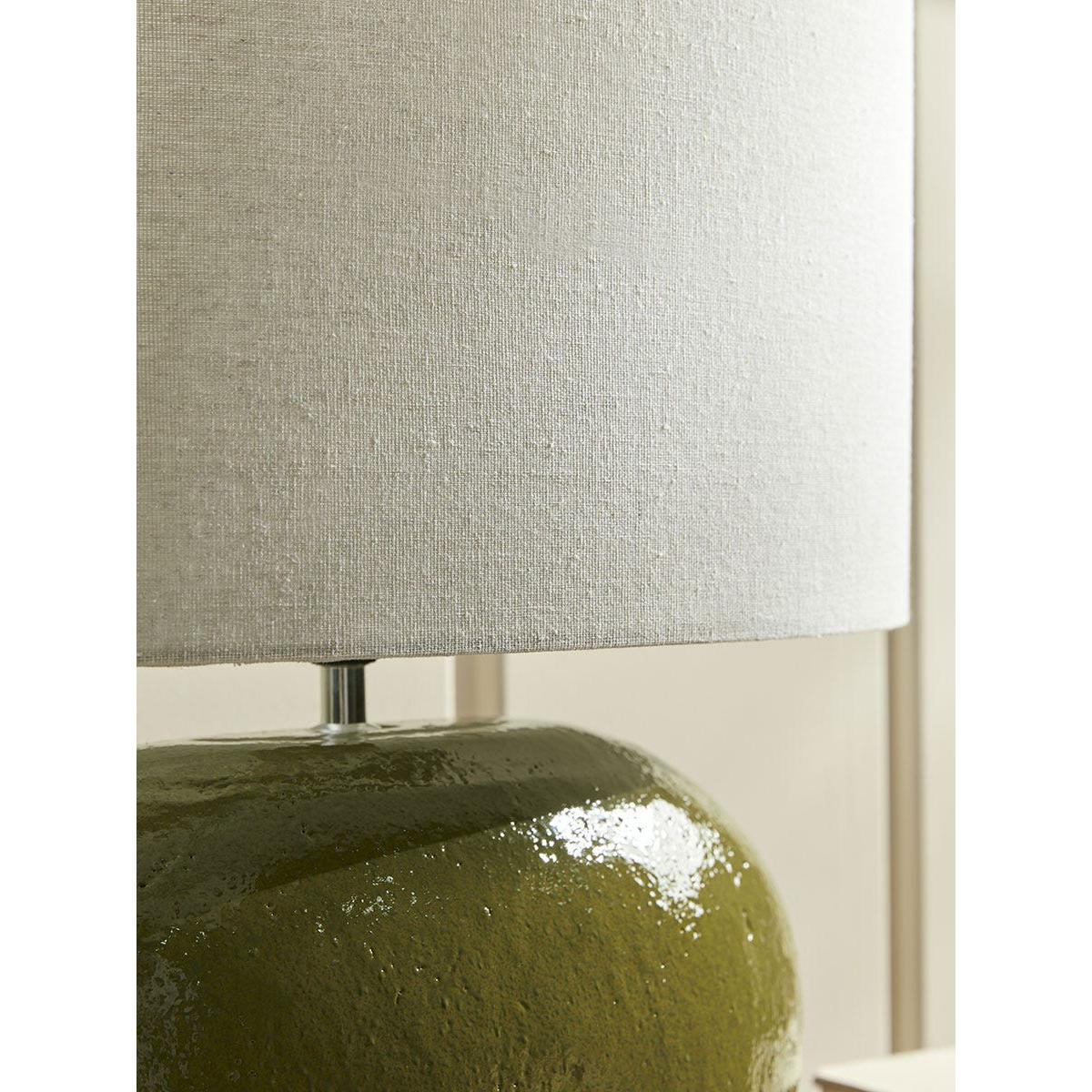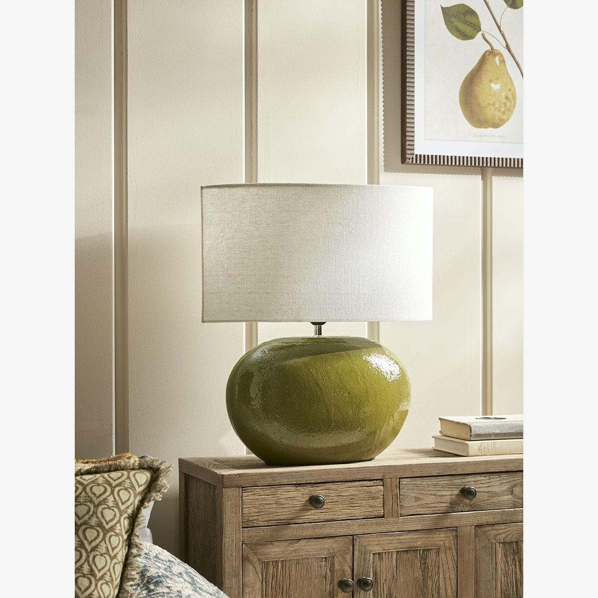 Add warmth and radiance into your home with this table lamp, which works perfectly in a home inspired by individuality and natural tones. Crafted from a glazed ceramic, the olive green base adds gentle colour to your space which pairs beautifully with a neutral linen shade, cascading a welcoming glow in your home. Discover how to create the perfect lighting scheme for your home using our Lighting Buying Guide.