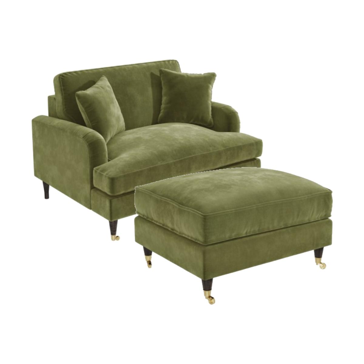 Olive Green Velvet Loveseat and Footstool Set - Payton