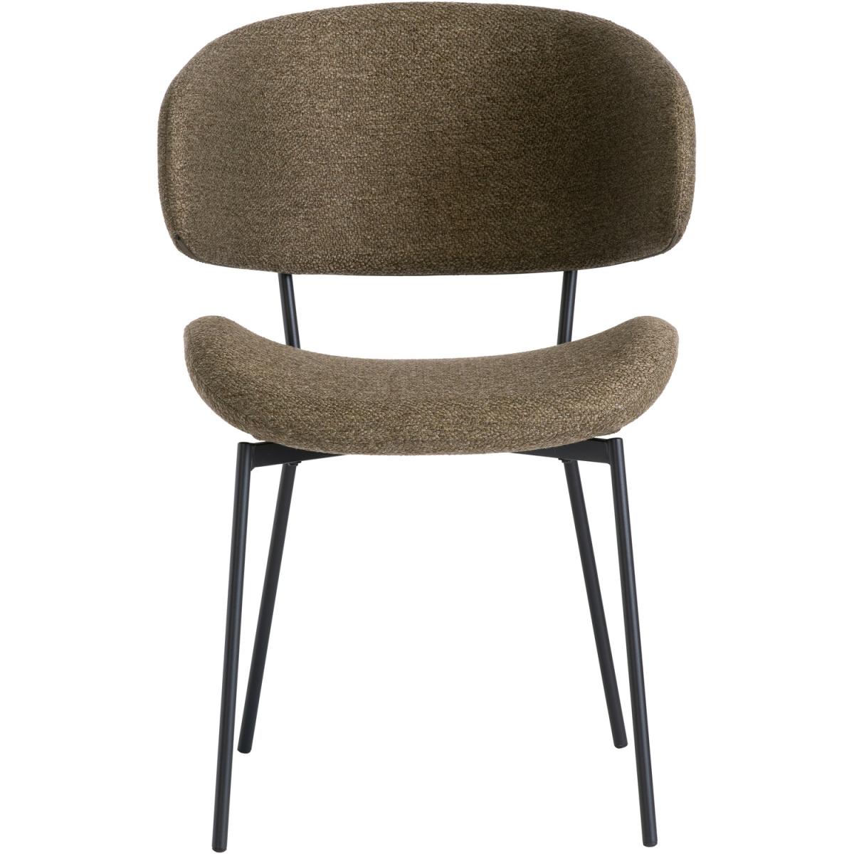 I’m a big fan of this olive-green willow chair for its simple silhouette and boucle-style upholstery - it feels both modern and welcoming. The slim black metal legs keep the look light, so it won’t overwhelm a smaller dining space, and the muted green works as a subtle accent rather than a statement colour. It sits well in Scandi-inspired schemes alongside pale woods and neutral linens, but you can also drop it into a more industrial loft with concrete floors and exposed brick. For a pulled-together feel, team a set of these chairs with a raw-edge oak table, layer in a charcoal wool rug, and introduce brass or terracotta accessories to tie in warm tones.