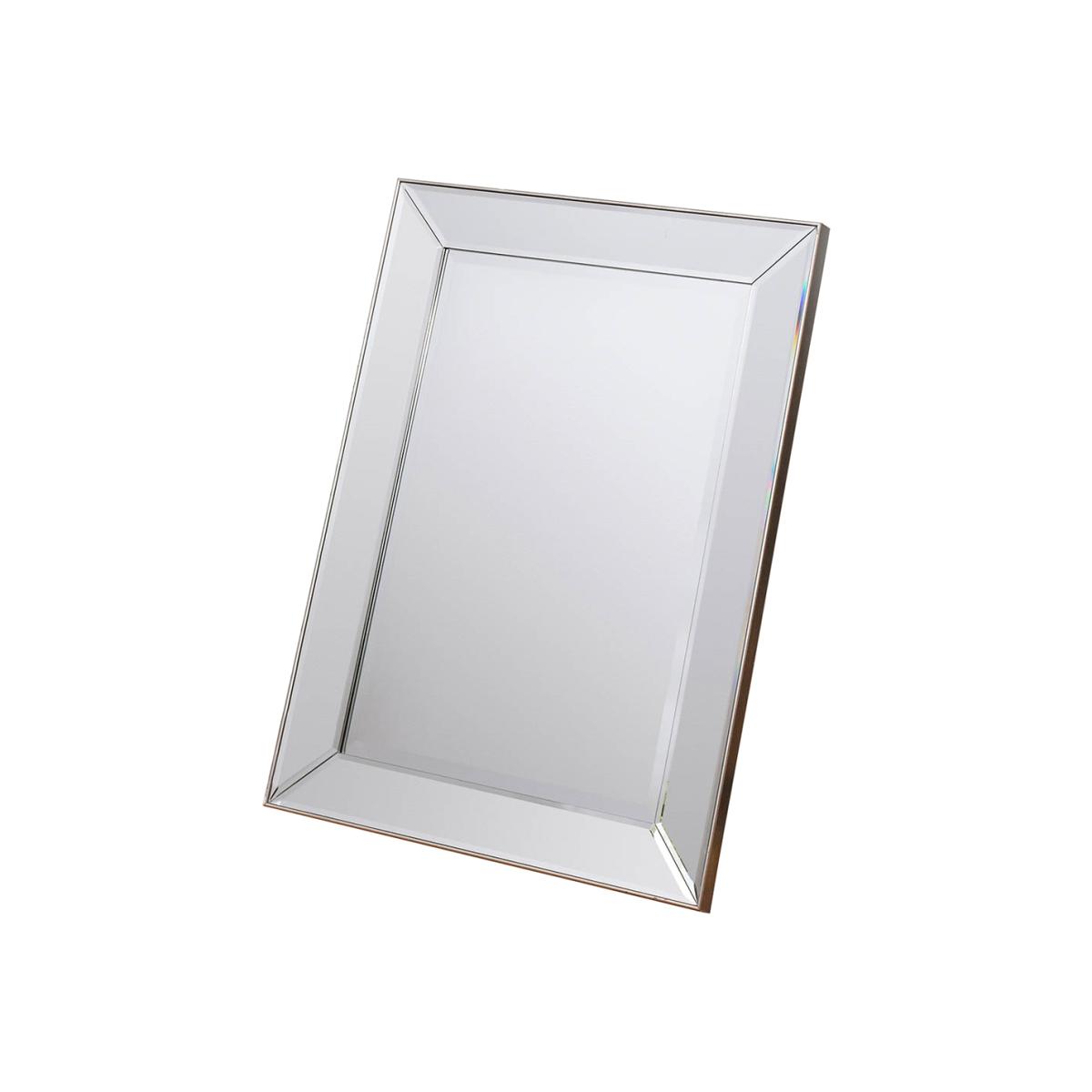 Clean and modern bevelled mirror frame. Shape: Rectangle. Material: Glass, PS. Colour/Finish: Champagne. Mount Type: Wall.