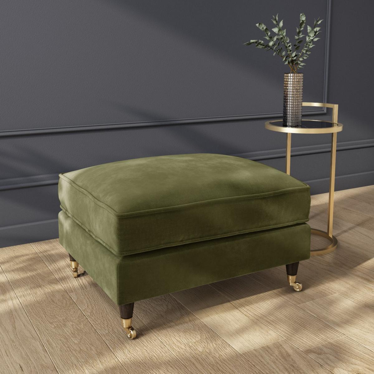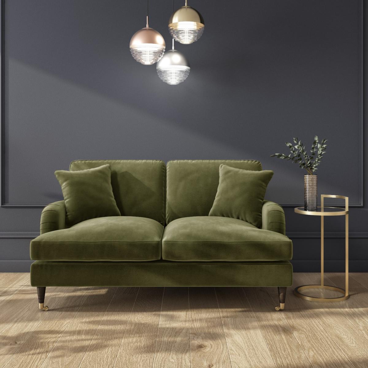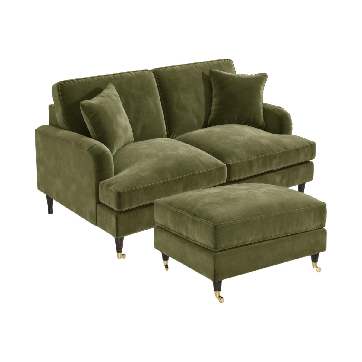 This bundle includes: 1 x Olive Green Velvet 2 Seater Sofa – Payton 1 x Olive Green Velvet Footstool – Payton Features we love Olive green velvet 3-seater sofa and footstool set Sofa comes with two matching scatter cushions Removable cushion covers are easy to wipe clean Footstool can also be used as an additional seat Foam filled for super comfy living room seating All about me Create the ultimate cosy living room with this Payton olive green velvet set, featuring a 3-seater sofa and footstool. It's the perfect combination of style and practicality, the olive upholstery with gold accent legs adds a pop of colour while being the ideal place to relax with your feet up after a long day. Need to know Sofa Overall dimensions:W150 x D96 x H86 cm Seating dimensions: W124 x D60 cm Packed dimensions: W152 x D98 x H61 cm Packed weight: 50 kg Colour:Olive green Finish: Velvet upholstery and wooden legs Material: Velvet (100% polyester), wooden frame and legs and metal castors Filling: Foam Assembly required: Yes - just attach the legs Footstool Overall dimensions: W75 x D62 x H44 cm Packed dimensions:W77 x D64 x H31 cm Packed weight: 10 kg Colour:Olive green Finish: Velvet upholstery and wooden legs Material: Velvet (100% polyester), wooden frame and legs and metal castors Assembly required: Yes - just attach the legs