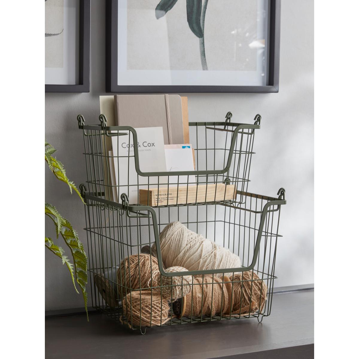 For an industrial style storage solution, our wire baskets create a modern storage solution that is sure to work with a contemporary scheme. The iron frame is complemented with an olive green tone, adding softness to these baskets. Handles on each side make them easy to move, and the deep lip at the front allows everyday items to be accessed easily.  Available in small and large.