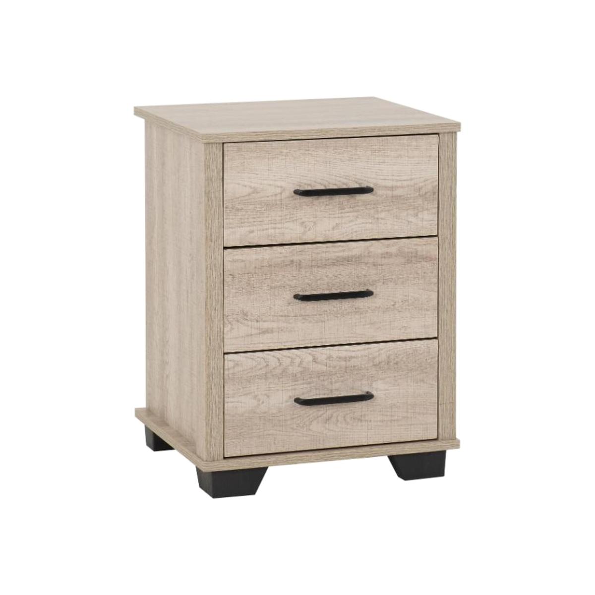 Enhance your bedroom with the sleek and functional Oliver 3 Drawer Bedside. Crafted in a sophisticated combination of light oak with bold black accents, this bedside piece seamlessly blends modern aesthetics with practicality. Boasting three spacious drawers, it offers convenient storage for your night-time essentials while maintaining a stylish and compact design that complements any bedroom decor. With its flat pack design, assembly is hassle-free, allowing you to effortlessly elevate your bedroom ambiance with the Oliver 3 Drawer Bedside. UK Mainland delivery only, between 9am - 9pm (weekdays) the courier will contact you on the day of delivery to offer a time slot. This takes place within 10 working days (Ground floor only). Please also ensure that we have a note of your up-to-date address and contact information, including daytime phone number and email address to be passed to the couriers.