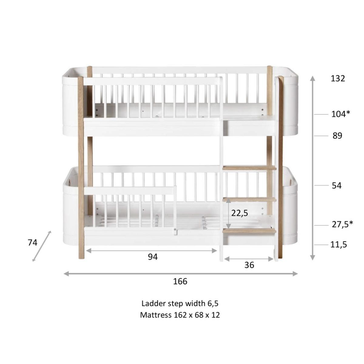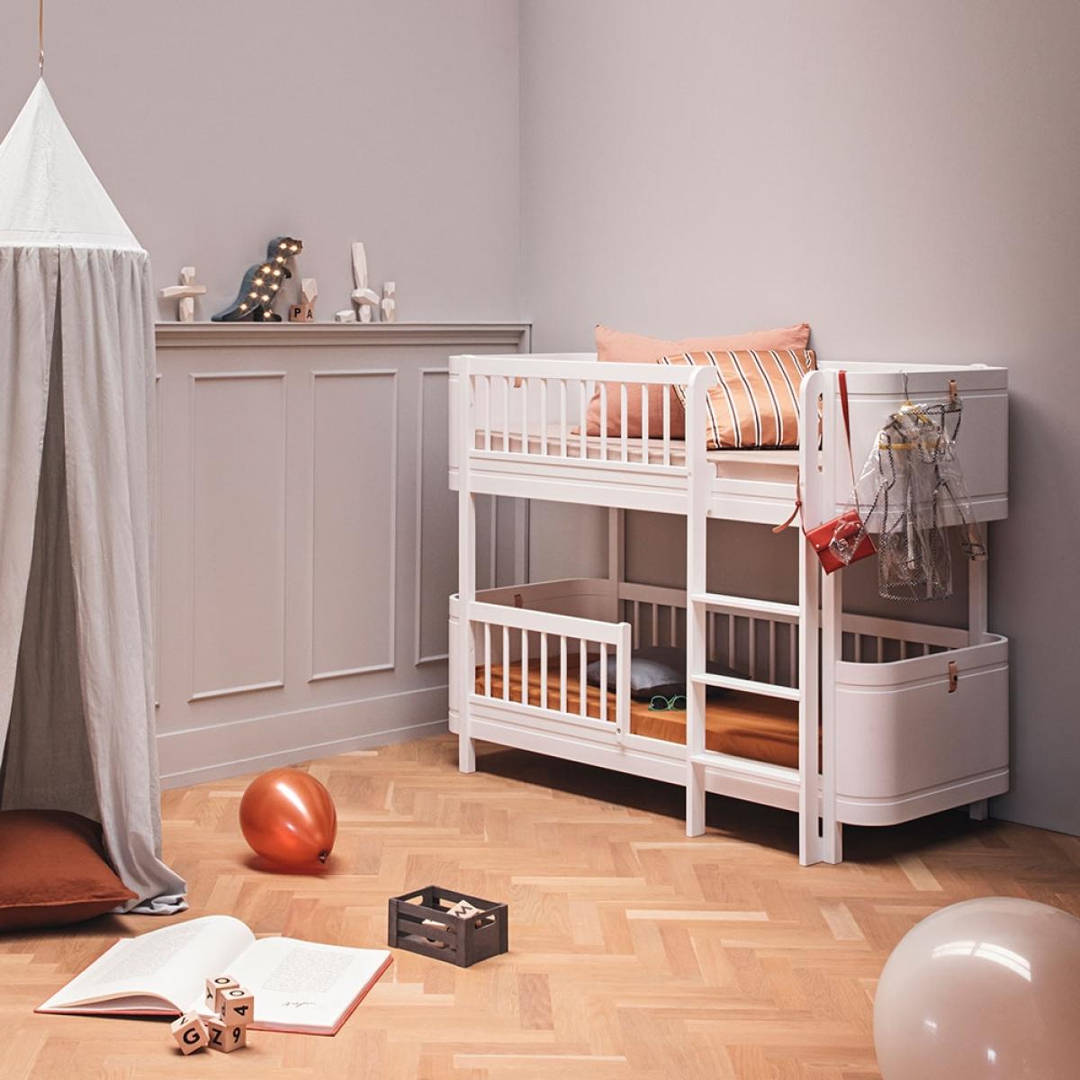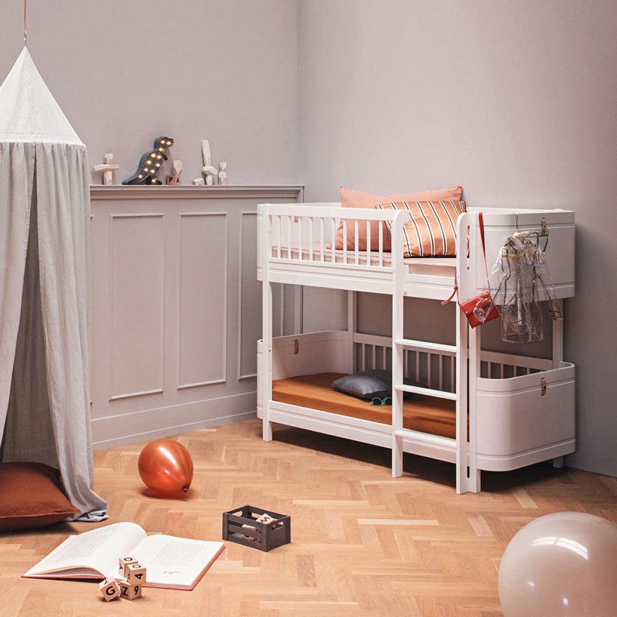 The perfect option for smaller bedrooms, the Wood Mini+ Kids Toddler Bunk Bed from Oliver Furniture is a bed that won't dominate the room. Made from solid Birch and finished in white; this Scandinavian inspired bunk bed, with its subtle curved edges and elegant design, will be a gorgeous addition to any children's bedroom. Once they've outgrown their bunk bed, easily convert this stunning piece of furniture into two junior beds with the optional conversion kit, allowing your kiddies to continue making use of this fabulous bed. Ideal for siblings or for the ultimate sleepover set up, now all that's left to decide is who gets the top and who will get the bottom?.