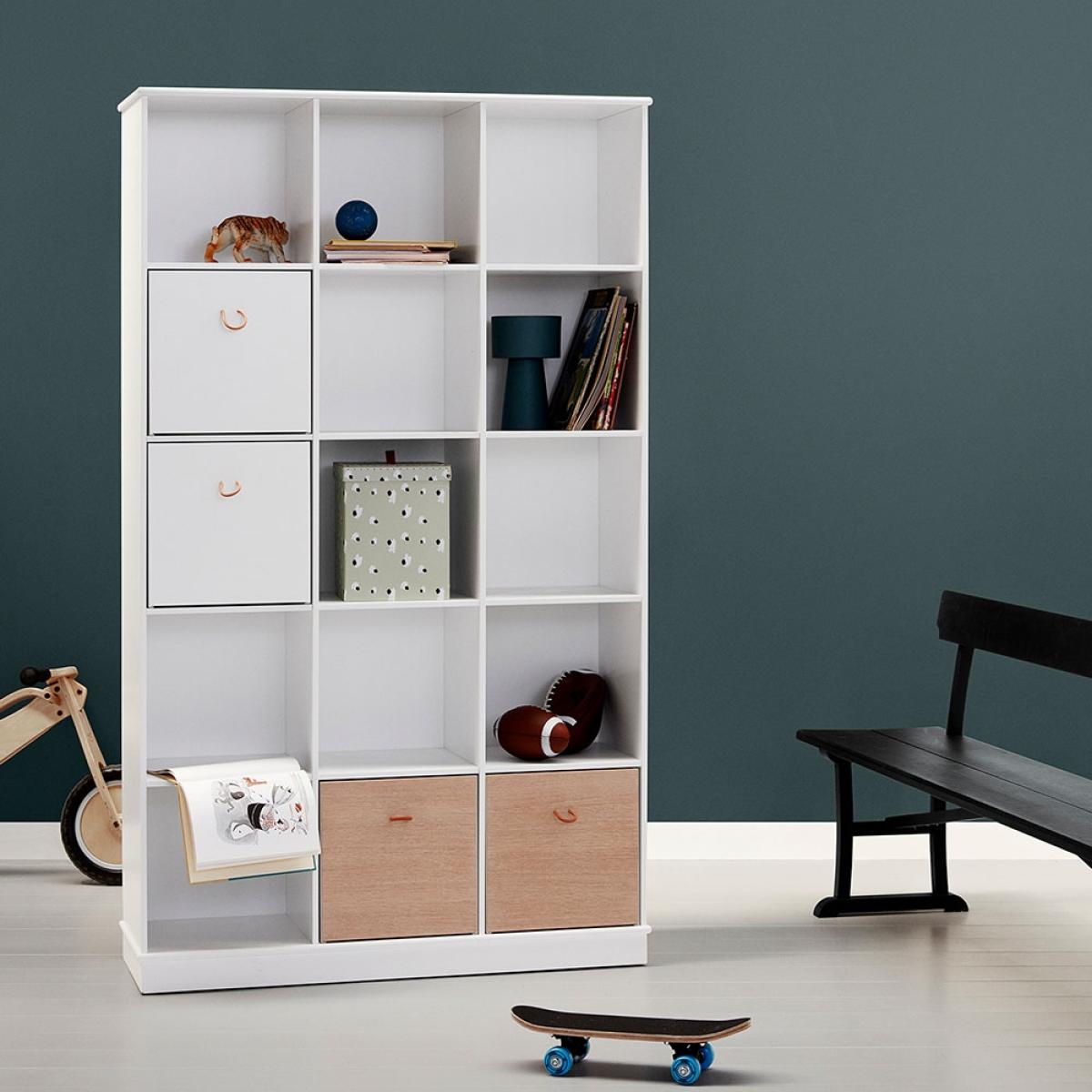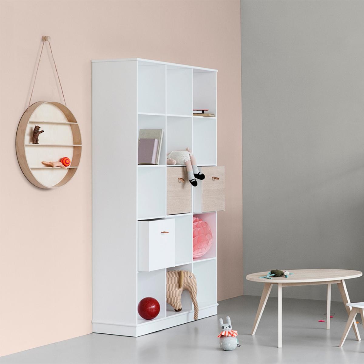 Every home needs ample storage, that's why we love the Wood Collection Vertical Boxed Shelving Unit, in white from Oliver Furniture - functional kids storage that does not compromise on style. Its simple Scandinavian design will suit a variety of home interior themes; it could be placed in a playroom, living room or hallway, creating a home for all your prized possessions. Available in a choice of 2 sizes, configured in either a large vertical 3 x 5 unit or a smaller vertical 2 x 5 unit. You can also add some super reversible storage cube boxes (available to purchase as an optional extra) giving you the option to individually choose whether you want the front in oak or white, with a unique detail, they have a small grip of leather on both sides.