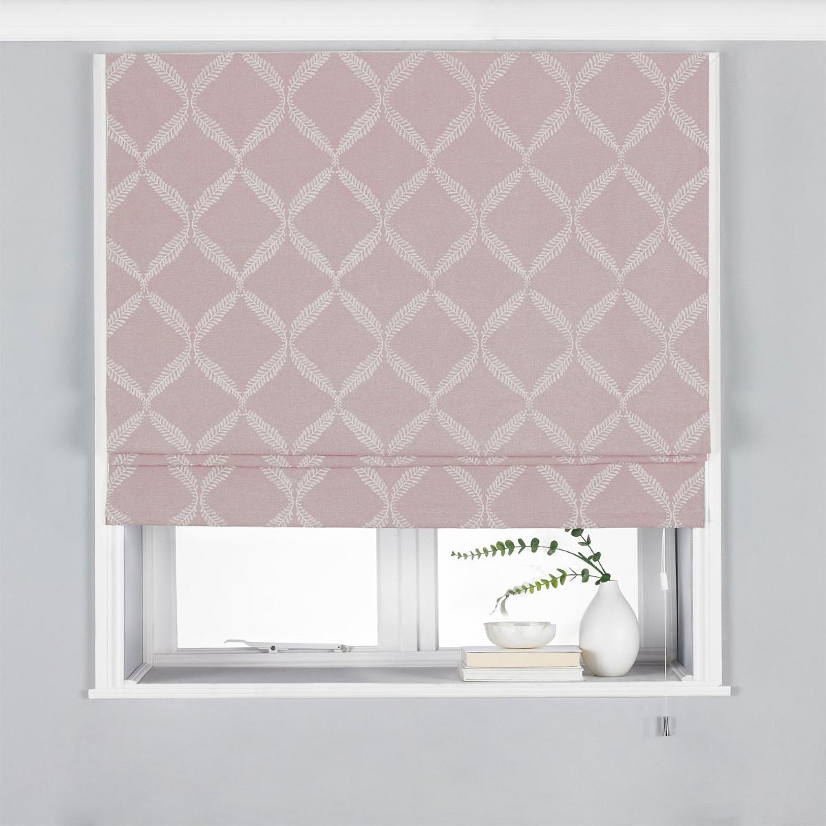 Finished with a modern blush colourway and a delicate lattice embroidery design, this stylish roller blind made of 100% polyester is hard-wearing and does not stain easily, making it both a practical and attractive piece. Sponge clean when needed to keep your blinds looking the best they can and add them to your home to give your living areas a welcoming touch. Designed with blackout qualities, this blind can be fitted above or inside a window recess. Please note: Includes fixing brackets, screws, wall plugs and easy to follow instructions. Adjustable pull cord with built-in child safety device.