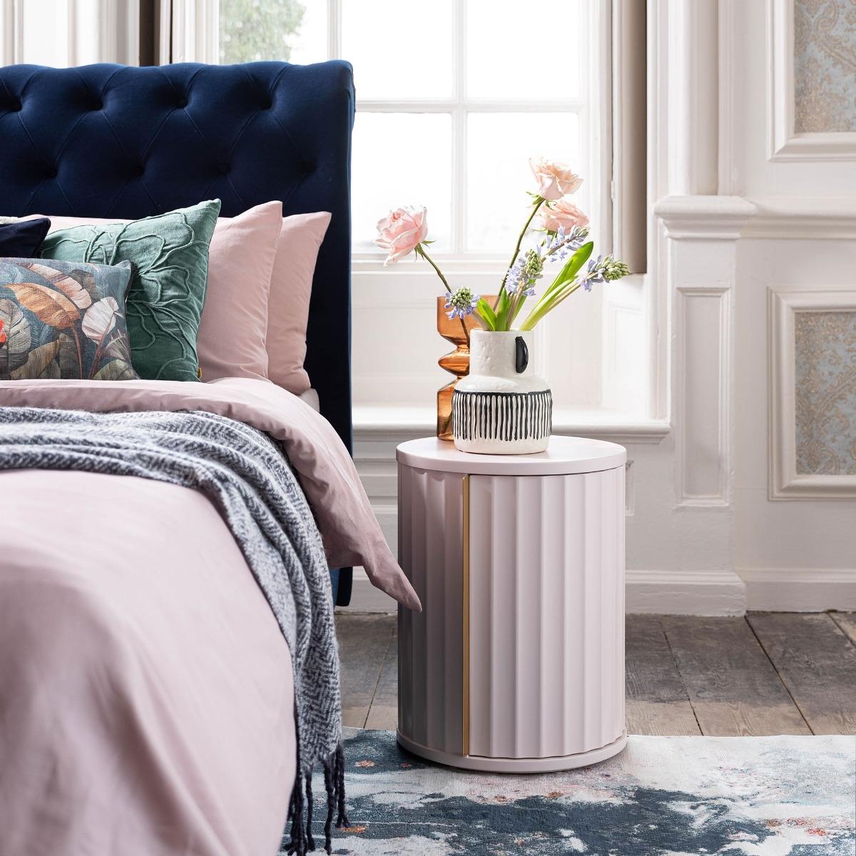 Design. The Olivia Left Hand Bedside Table suits both classic and contemporary interior styles and brings a fresh, super stylish vibe to any bedroom. Offered as part of our collaboration with the colour specialists, Lick, this bedside table will be hand painted by our team in oneof the 7 different vibrant and planet friendly Lick paints, leaving you completely spoilt for choice. Add a touch of. Colour. To your sleeping space and be sure to wake up happy!.