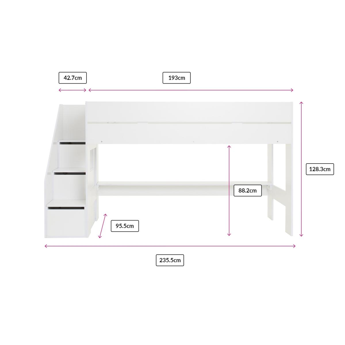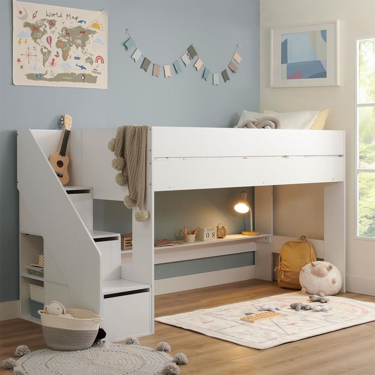 I love the Olivia Mid Sleeper bed for its practicality and clean, modern aesthetic. Its built-in storage makes it perfect for smaller rooms or for keeping things organised without cluttering the space. It works well in contemporary, Scandi, or minimalist interiors, especially when paired with soft, neutral tones and cosy accessories. For styling, consider adding colourful bed linens or playful cushions to make the space inviting. Incorporating a mix of baskets and drawers beneath the bed can optimise storage, while a simple desk or bookshelf nearby creates a functional teenage or guest room zone. The sleek design also means it can grow with your child, seamlessly fitting into different interior themes over the years.