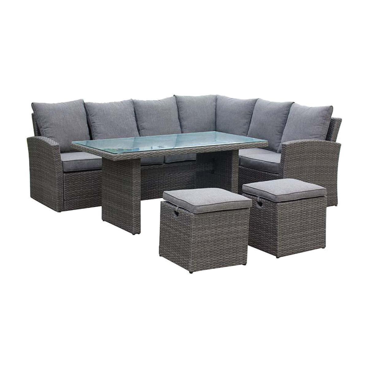 Whether you want to lounge alone in peace or gather your family around you, Olivia's 8 seater deluxe outdoor dining setcontains everything you need for your garden. You can stretch out on the sofa or invite others to share this comfortable set. The shape allows it to tuck neatly into the corner, while the smaller stools can be moved around or taken away as convenient. The rattan is not just aesthetically pleasing; it also resists sun, frost and rain, with the whole set requiring minimal maintenance. *Moot Trading Ltd is not a lender and acts only as an introducer. The credit product is provided by Klarna Bank AB (publ). Credit is only available to permanent UK residents aged 18 and over, subject to status. Terms and conditions apply. Please note that the following products are not regulated by the FCA: Pay in 30 days and Pay in 3 instalments. Read More.