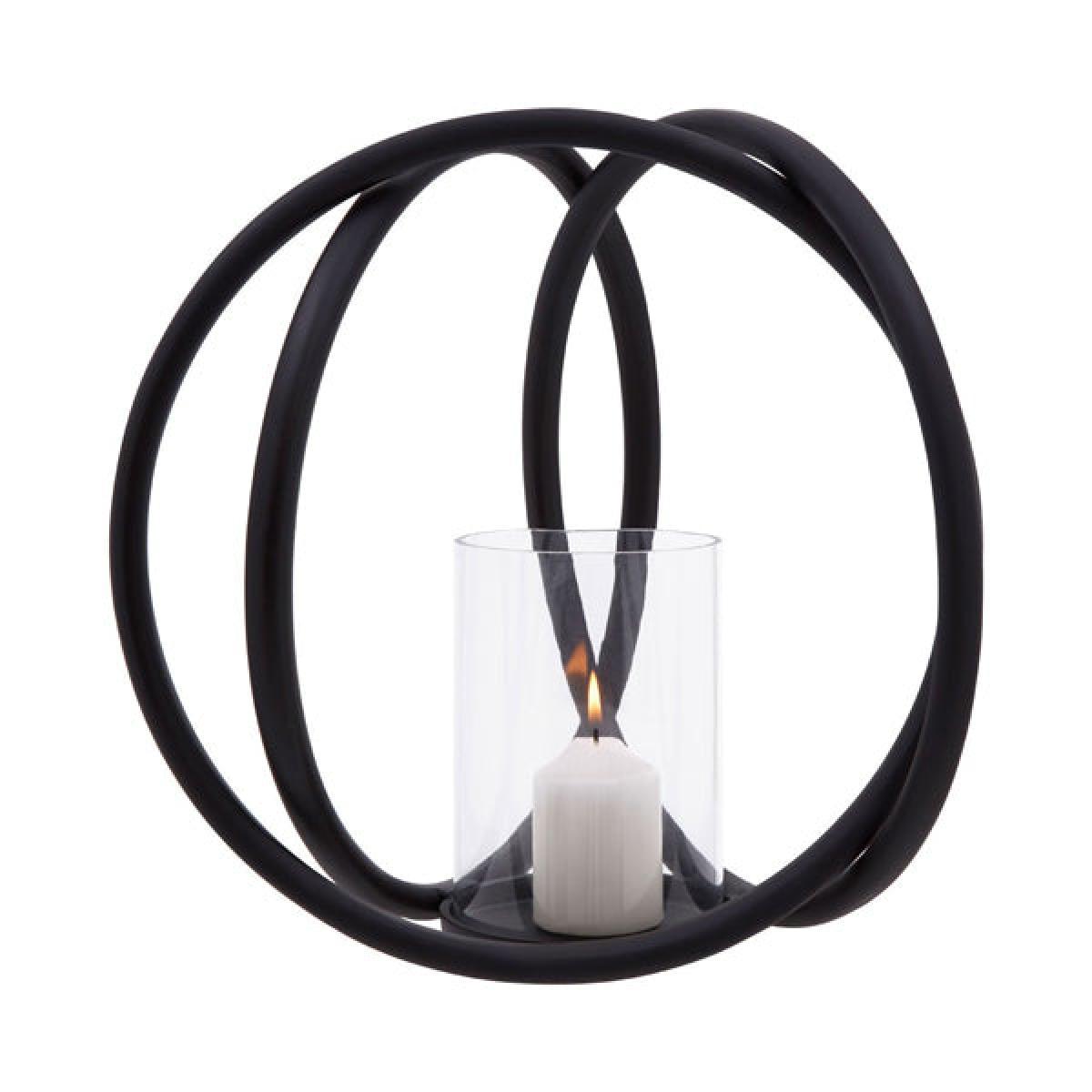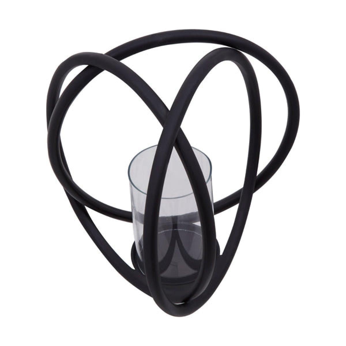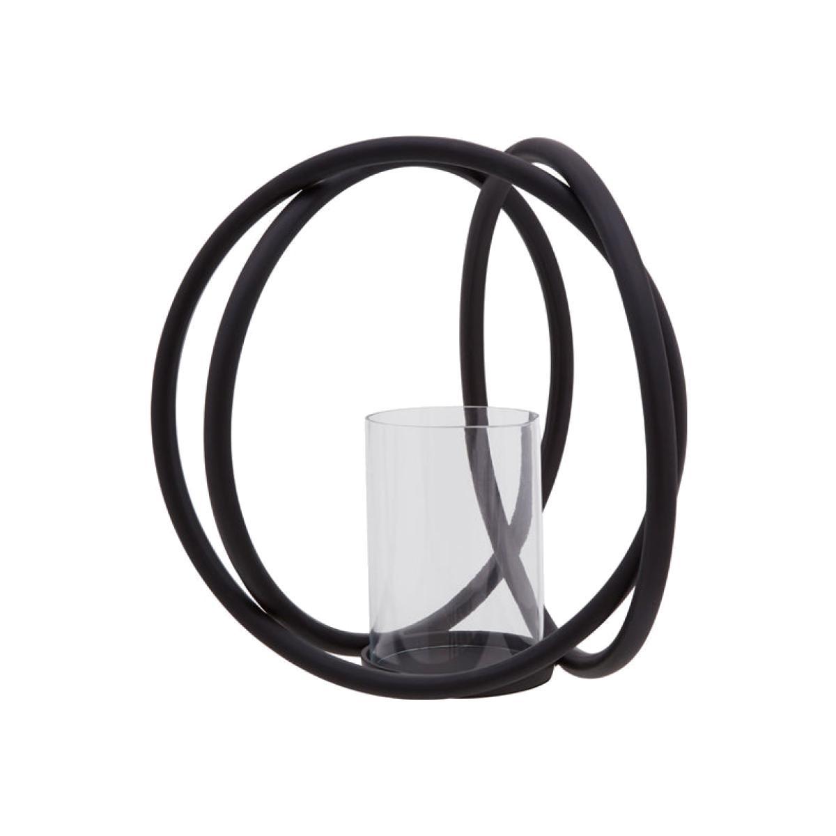 Illuminate your living space or dining room with this stunning candle holder. Olivia's Abi matt black medium candle holder is the perfect centrepiece in your room; for example, it will look stunning on your coffee table, dining table, mantelpiece or side table. Standing 31cm high, this eye-catching piece is a great addition to your home. Place a pillar candle inside the glass, light it and dim your lights to take full advantage of this beautiful sculptural piece. The three black iron rings are elegantly interconnected around a glass insert, making this a magnificent and well-designed ornament even without a lit candle inside. *Moot Trading Ltd is not a lender and acts only as an introducer. The credit product is provided by Klarna Bank AB (publ). Credit is only available to permanent UK residents aged 18 and over, subject to status. Terms and conditions apply. Please note that the following products are not regulated by the FCA: Pay in 30 days and Pay in 3 instalments. Read More.