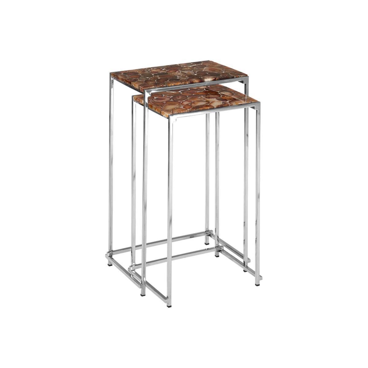The stunning natural features of Olivia's agate-topped nesting side tables certainly make a distinctive impression. These alluring tables showcase the incredible beauty of this natural stone and its myriad of rich warm tones. The contrasting angular frame is crafted in sleek and gleaming stainless steel to provide a powerful counterpoint which places these tables within a wholly contemporary aesthetic. They are also admirably functional, nesting away when space is short but easy to deploy whenever one is needed. Not that you won't want them to be seen - they will provide the perfect touch to an urban chic drawing room, breakfast room or conservatory. *Moot Trading Ltd is not a lender and acts only as an introducer. The credit product is provided by Klarna Bank AB (publ). Credit is only available to permanent UK residents aged 18 and over, subject to status. Terms and conditions apply. Please note that the following products are not regulated by the FCA: Pay in 30 days and Pay in 3 instalments. Read More.