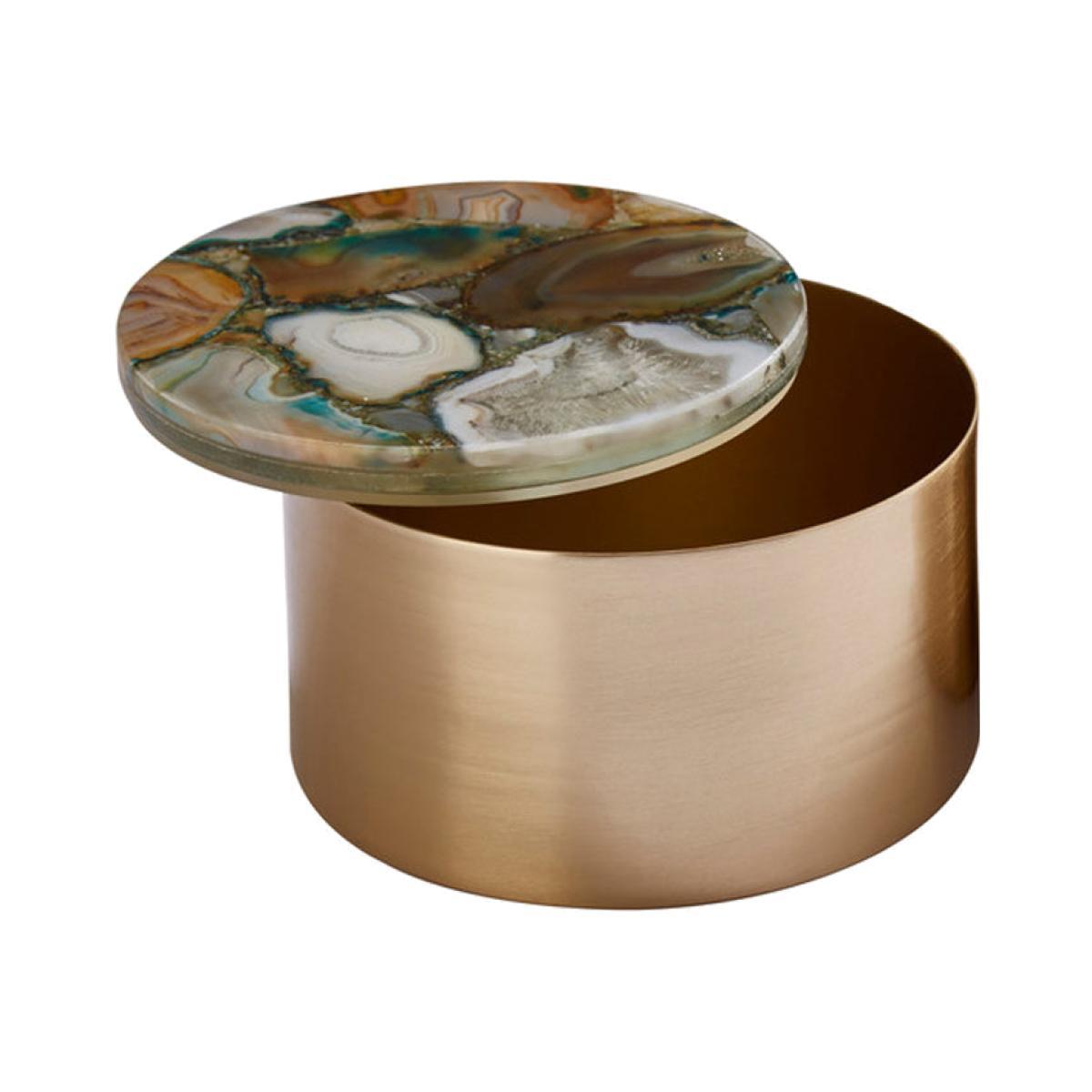 Combining the luxe glow of gold with the natural beauty of agate, Olivia's Agate trinket box (large) is a stunning piece of decorative craftsmanship which is also a practical storage solution. The body of this circular box is a burnished shade of gold, which will add a touch of sumptuous appeal to your home. The lid of the box is gorgeous agate, polished to enhance the appeal of this stone. As a duo, agate and gold deliver a range of hues which will be a highlight of any interior palette. Finished to meticulous standards, this box will be a safe haven for precious small items. *Moot Trading Ltd is not a lender and acts only as an introducer. The credit product is provided by Klarna Bank AB (publ). Credit is only available to permanent UK residents aged 18 and over, subject to status. Terms and conditions apply. Please note that the following products are not regulated by the FCA: Pay in 30 days and Pay in 3 instalments. Read More.
