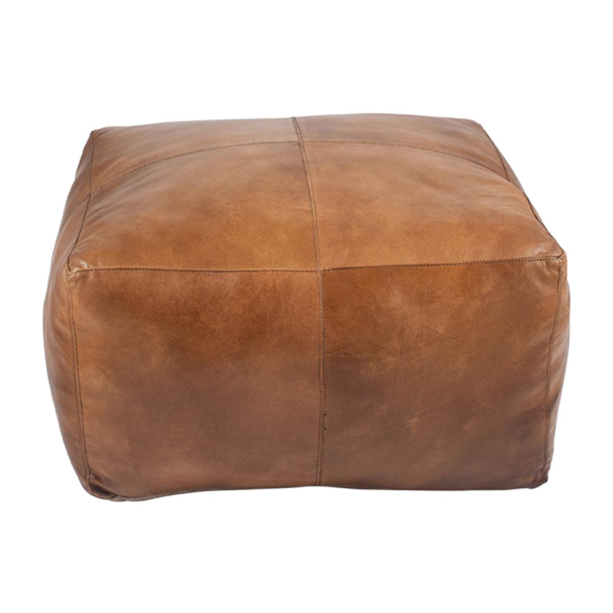 Olivia's Alpha Natural Tan Leather Square Pouffe