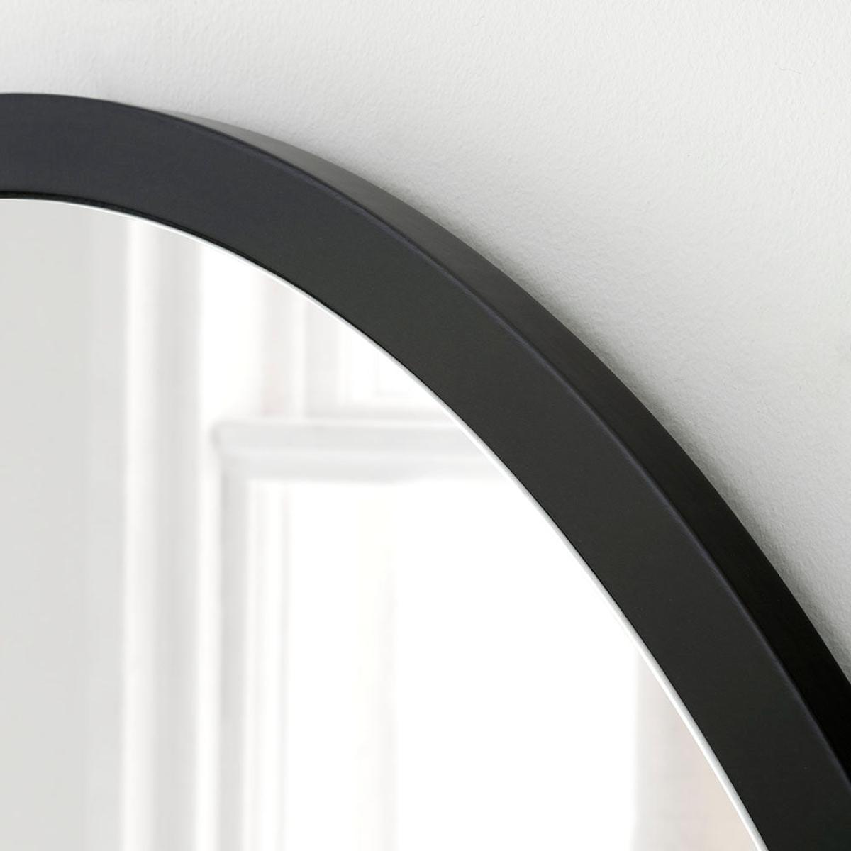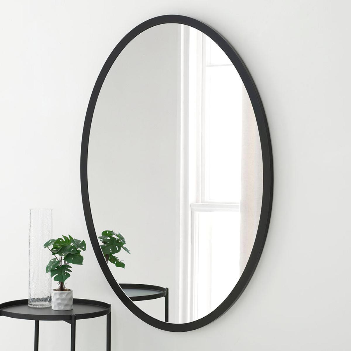 Introducing Olivia's Amara Oval Wall Mirror in Black—a testament to expert craftsmanship and contemporary allure. This large, solid oval mirror is meticulously crafted in the UK, featuring a frame constructed from wood and finished in a subtle yet sophisticated black. The versatility of this mirror allows for convenient vertical or horizontal hanging, tailored to your interior preferences, with hanging hooks attached to the back for ease. The mirror glass, boasting high reflective qualities, promises a clear and captivating reflection. A beautiful addition to your space, this contemporary oval mirror is handcrafted in the UK by skilled artisans, marrying style and craftsmanship seamlessly. Olivia's Amara Oval Wall Mirror is not just a reflection—it's a finely crafted statement piece for your living space. Additional Information