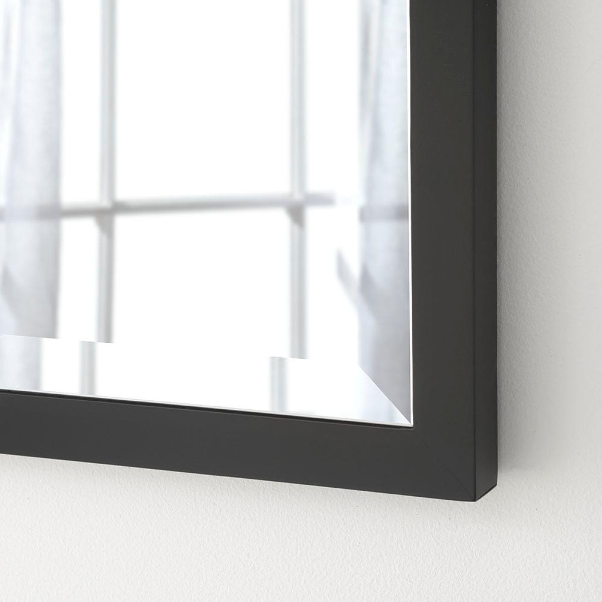 Olivia's Amara Rectangular Mirror in Black is a perfect example of expert British craftsmanship combined with contemporary design. This large rectangular mirror, boasting a sleek and understated black finish, features a frame constructed from durable wood. Designed for versatility, it can be conveniently hung either vertically or horizontally to suit your interior needs, with hanging hooks thoughtfully attached to the back for easy installation. The mirror glass is enhanced with stunning bevelled edges, offering high reflective qualities for a very clear and precise reflection. Each piece is handcrafted in the UK by skilled artisans, ensuring that this beautiful contemporary rectangular mirror is not only a functional addition to your space but also an artistic statement piece, reflecting impeccable taste and craftsmanship. Additional Information