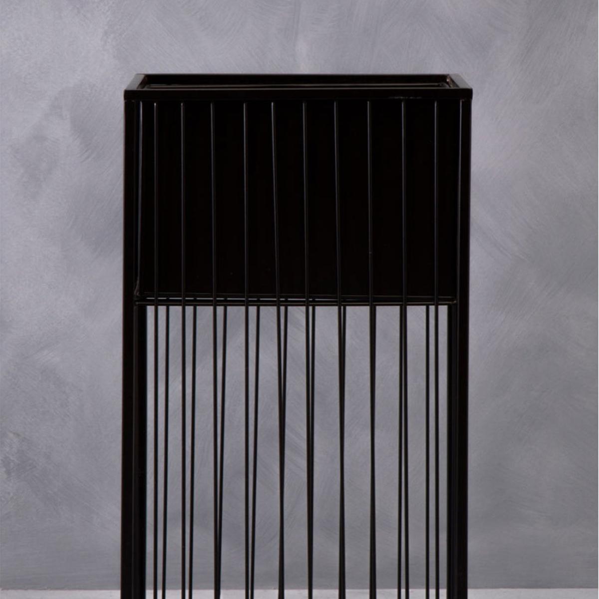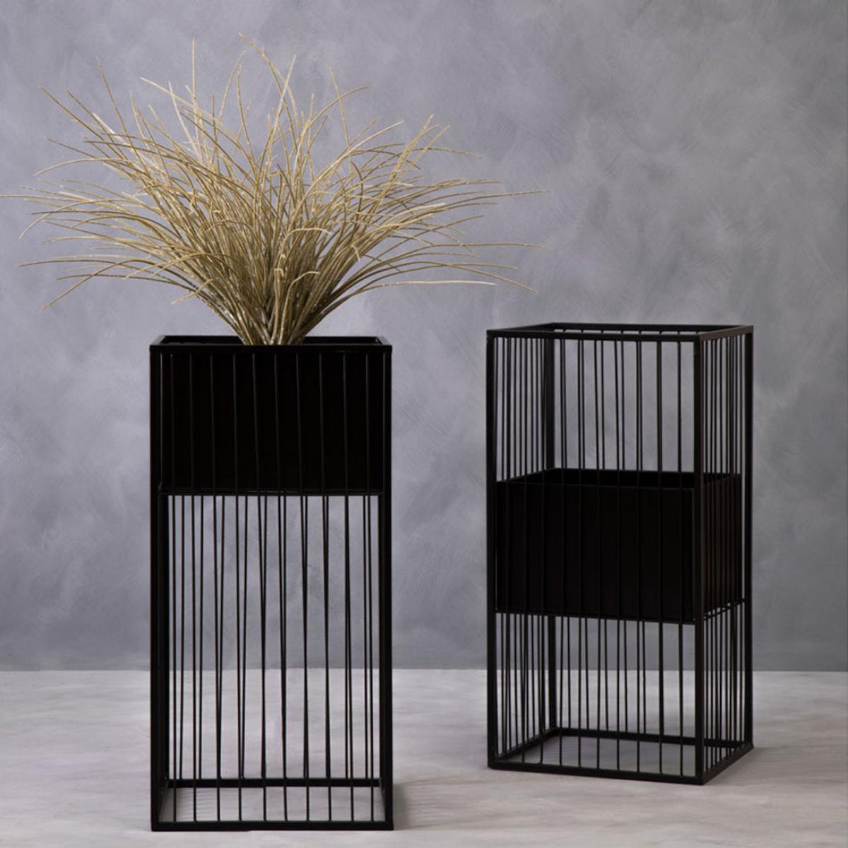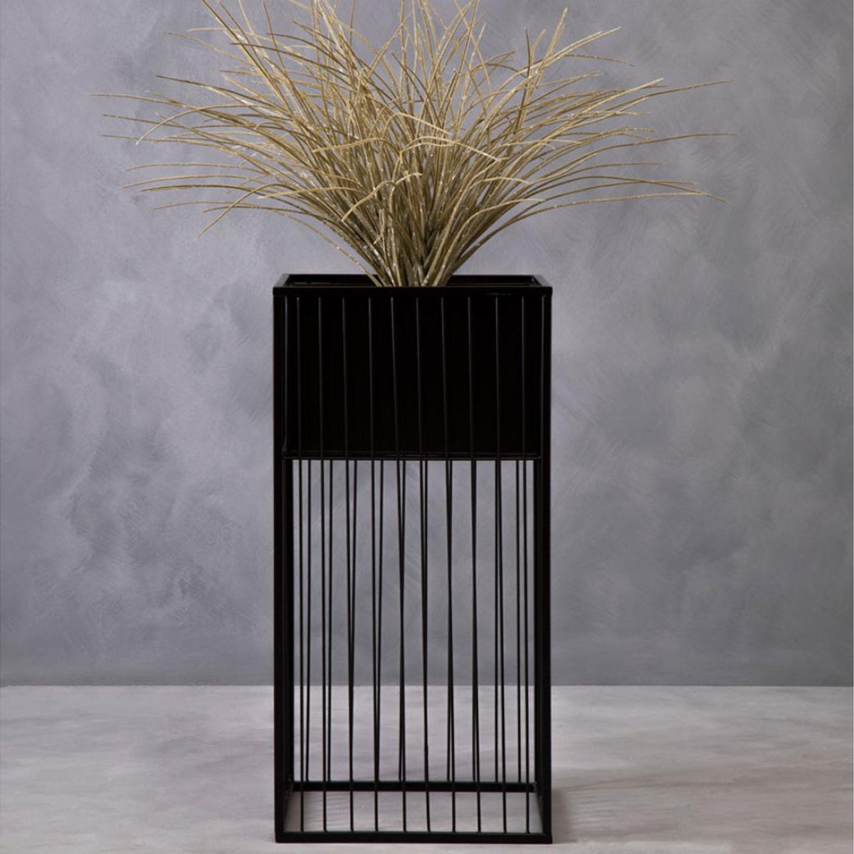 This floor standing planter is made from robust iron and exhibits a caged-shaped design. The square planter in a black finish sits neatly at the top of the open wire frame creating a three-dimensio. View More. This floor standing planter is made from robust iron and exhibits a caged-shaped design. The square planter in a black finish sits neatly at the top of the open wire frame creating a three-dimensional allure and depth to the floral setting.
