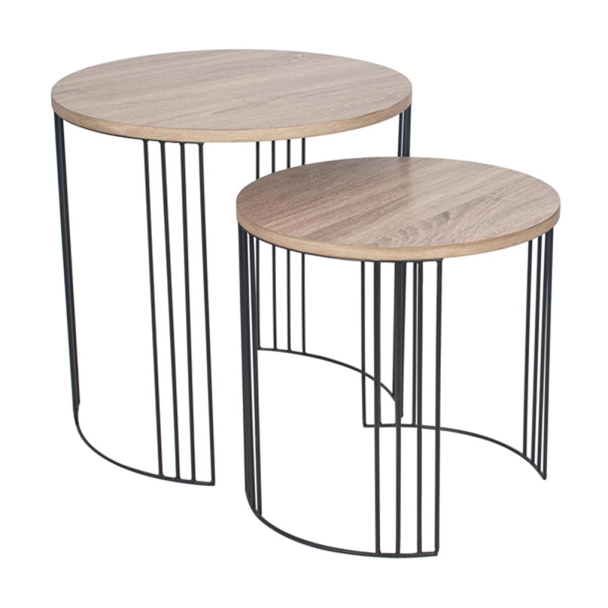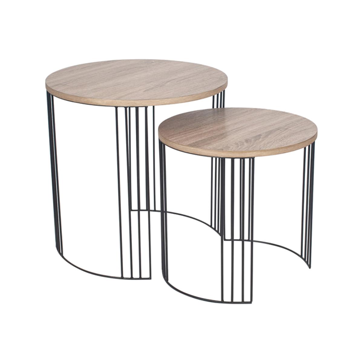 This set of 2 Amelia oak wood effect topped coffee tables with sleek, black metal legs are a stylish pairing for any contemporary interior. The 2 sizes compliment each other well and can be used in various areas around the house. The statement metal legs are key to this striking and modern design. Add the matching coffee table to complete the look. Available separately.