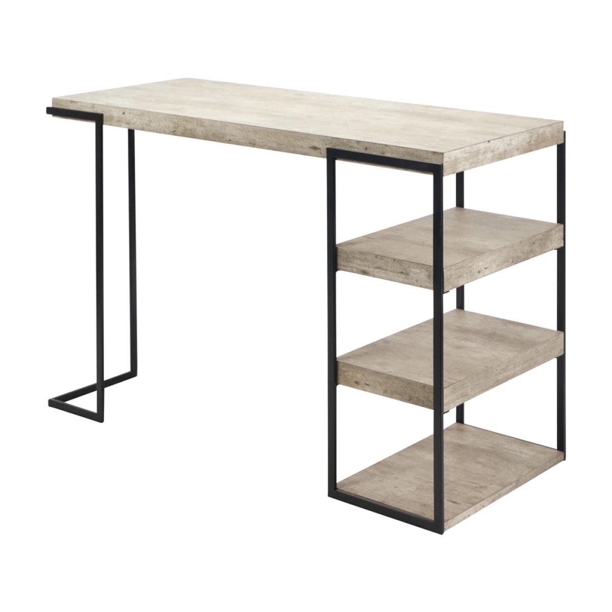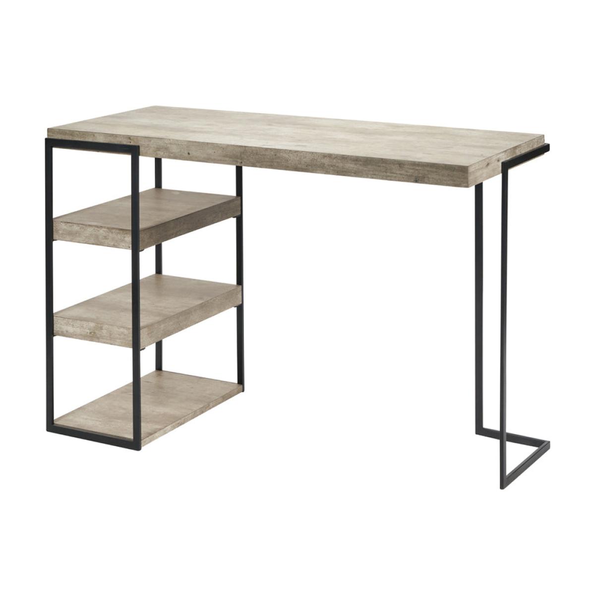 Olivia's Amelie Concrete Effect Wood and Black Iron Desk