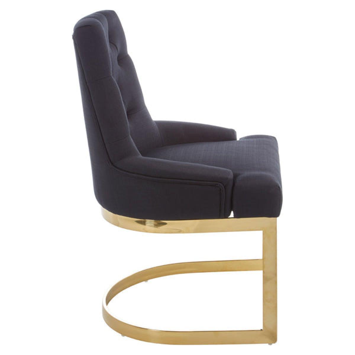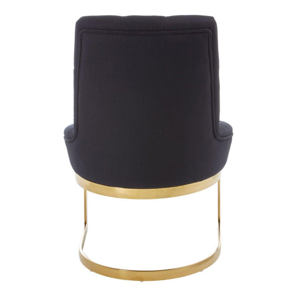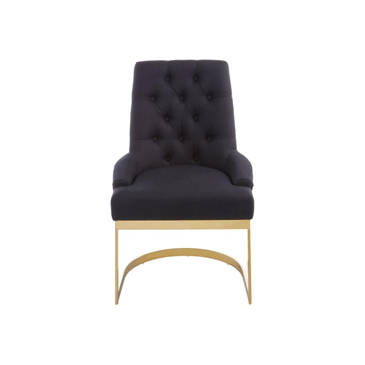 Make a stunning dining area in your home with these stylish Anna dining chairs from Olivia's. Made from black linen fabric resting on a gold stainless steel frame, these chairs ooze style and elegance. With a high curved buttoned padded backrest and a padded seat and small side arms, these dining chairs bring style and comfort to your home. The chair rests on two front legs which almost seem to defy gravity. The generous padding of the chair makes it a great seat for comfortable dining. This stylish chair is perfect for your dining area or to use as an occasional chair in your home. *Moot Trading Ltd is not a lender and acts only as an introducer. The credit product is provided by Klarna Bank AB (publ). Credit is only available to permanent UK residents aged 18 and over, subject to status. Terms and conditions apply. Please note that the following products are not regulated by the FCA: Pay in 30 days and Pay in 3 instalments. Read More.
