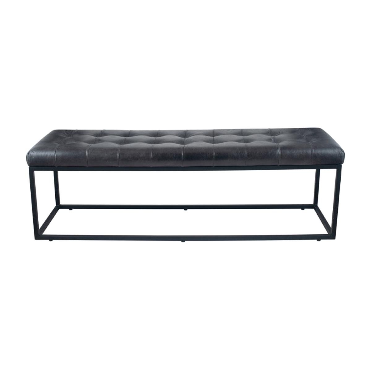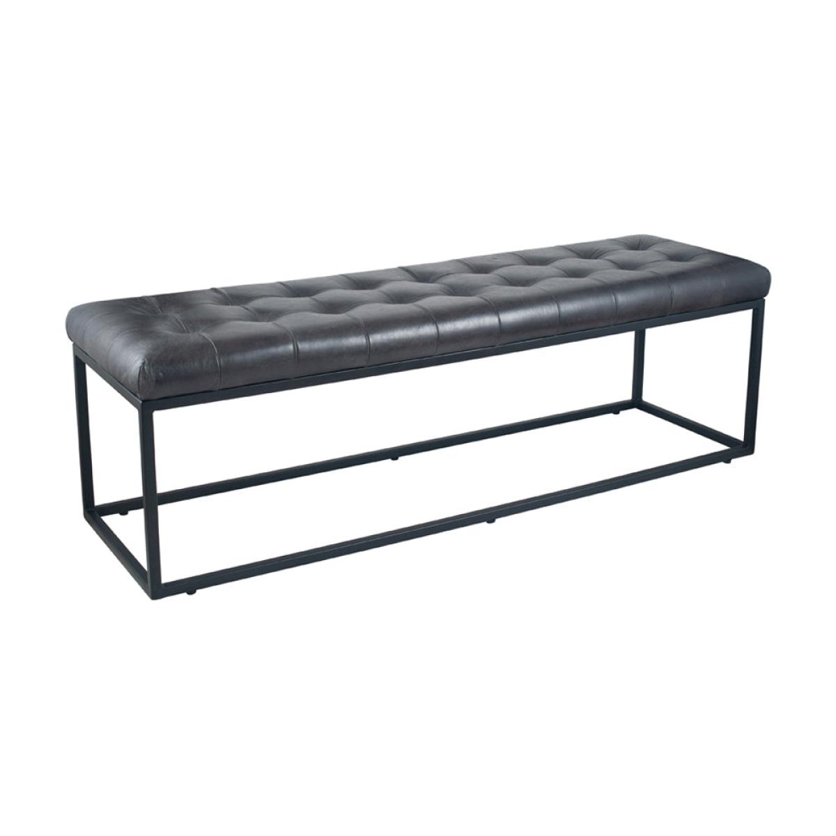 Style your home with this classic steel grey leather buttoned bench with a feature black iron frame.