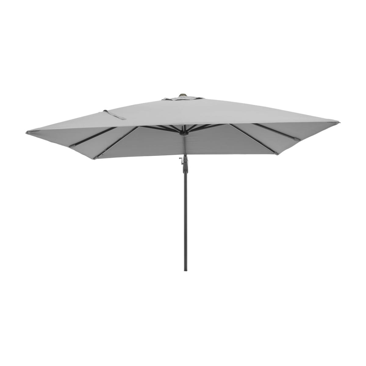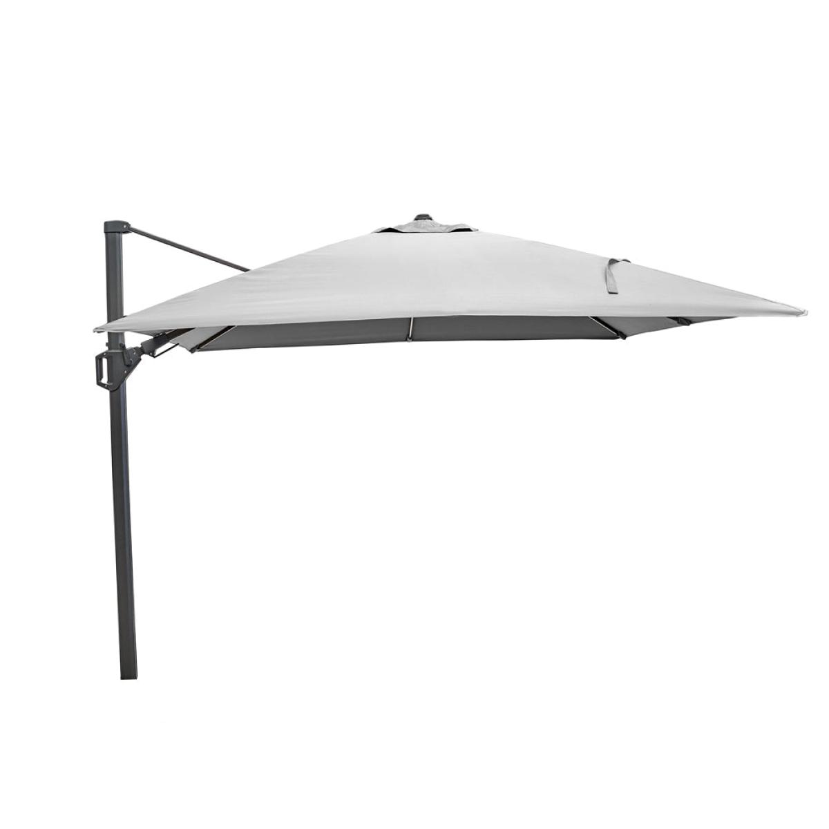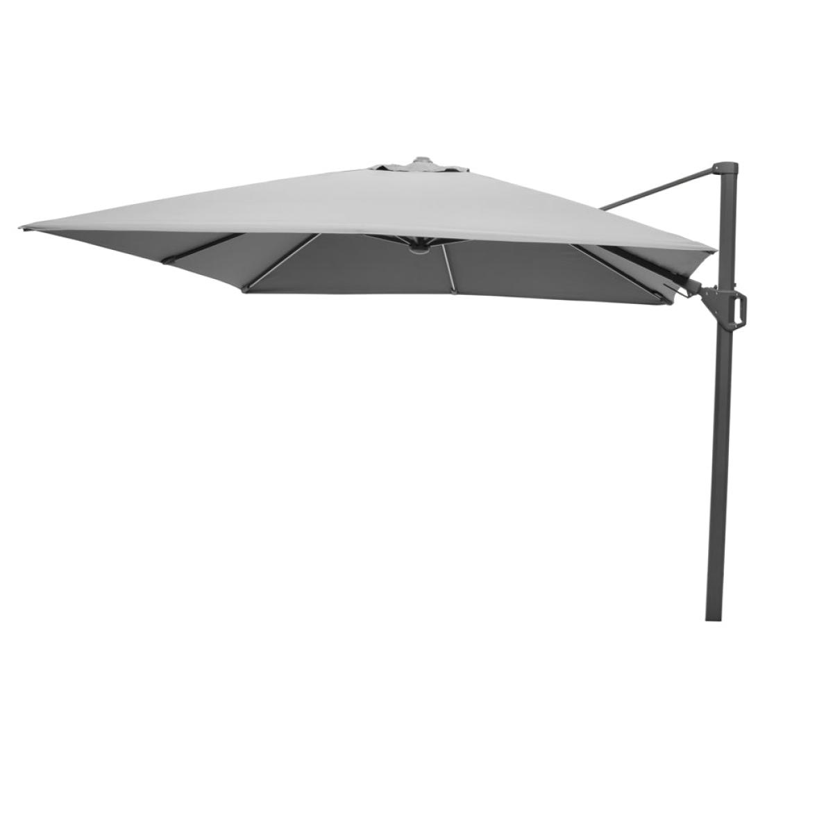 The stylish Glow Challenger T2 is a free-arm parasol that makes it possible to enjoy the summer days for longer with integrated warm white LED lighting in the ribs. The light can be switched to create direct lighting, shining both upwards and downwards, or alternatively switch the light to shine solely upwards if you fancy a more ambient, relaxed feel. The Glow parasol is wireless and comes with two rechargeable batteries that last up to 3 hours and can be charged using the USB charger included, making this a reliable choice in comparison to similar parasols on the market that rely on solar panels. Our T2 Parasols offer a double tilt system ensuring the full movement of the parasol without any movement of the base. You can tilt the parasol from side to side or backward and forwards, and it can be held easily at any angle by simply locking it into place with a handy lever. The parasol can be moved around 360 degrees in a smooth and easy action, guaranteeing shade wherever you desire. The mechanism of the parasol is durable stainless steel and encased in a strong powder-coated aluminium housing, meaning no rust or corrosion. The durability and strength of the parasol is further enhanced with its robust powder-coated aluminium pole and the tension springs that keep the fabric taught, secure, and looking its best. The parasol, in stylish Luna Grey is made from luxurious premium-class fabric, which is water-repellent and dirt-resistant protecting you from the elements and also the sun’s UV rays. The fabric has been solution dyed giving it the advantage of keeping its colour for a lot longer than most other parasols on the market. We suggest using a cover to protect your parasol while not in use to maintain its quality, please see the Aerocover recommended below. All of our parasols are sold separately to our parasol bases enabling you to choose the correct base for your chosen parasol. Please see our recommended base below.