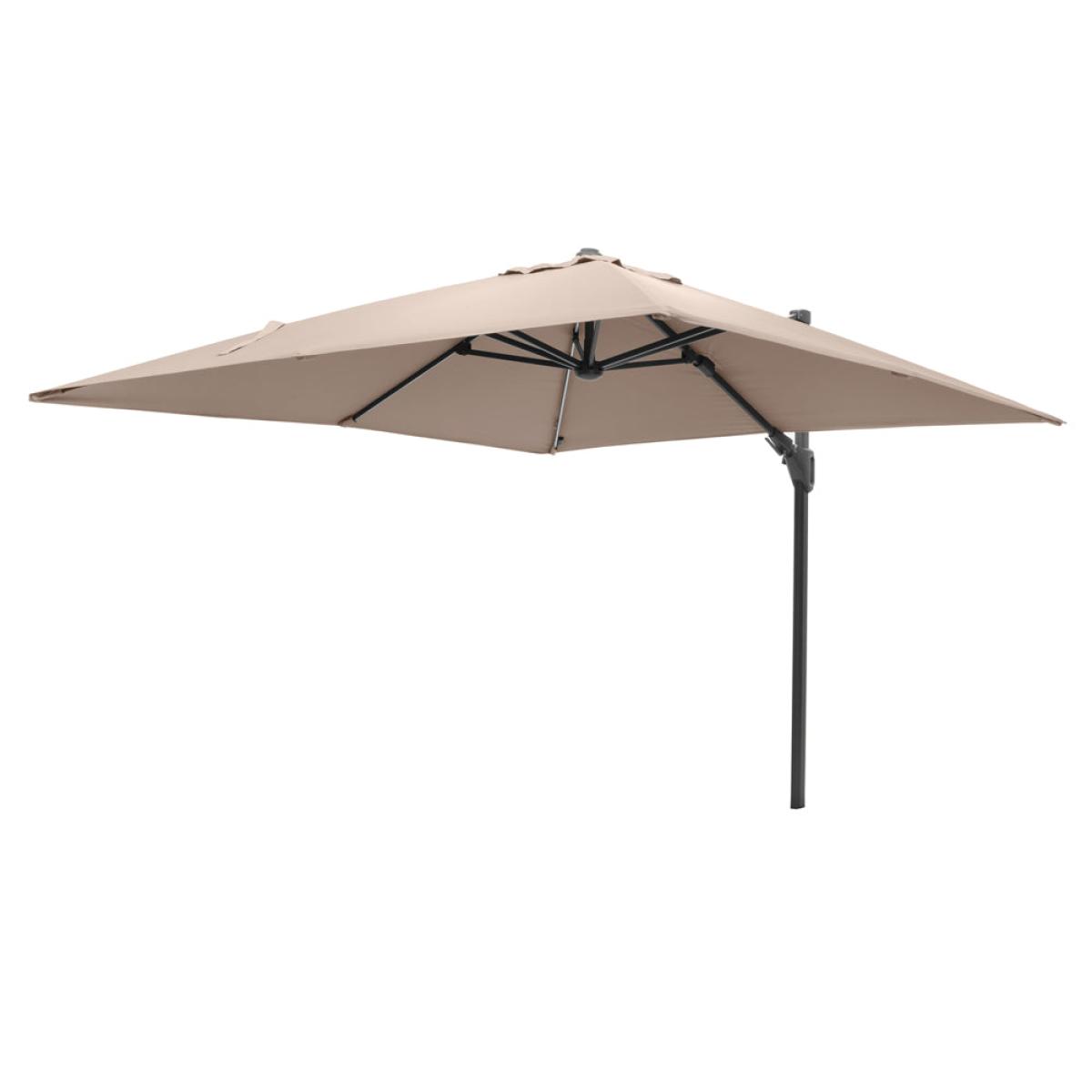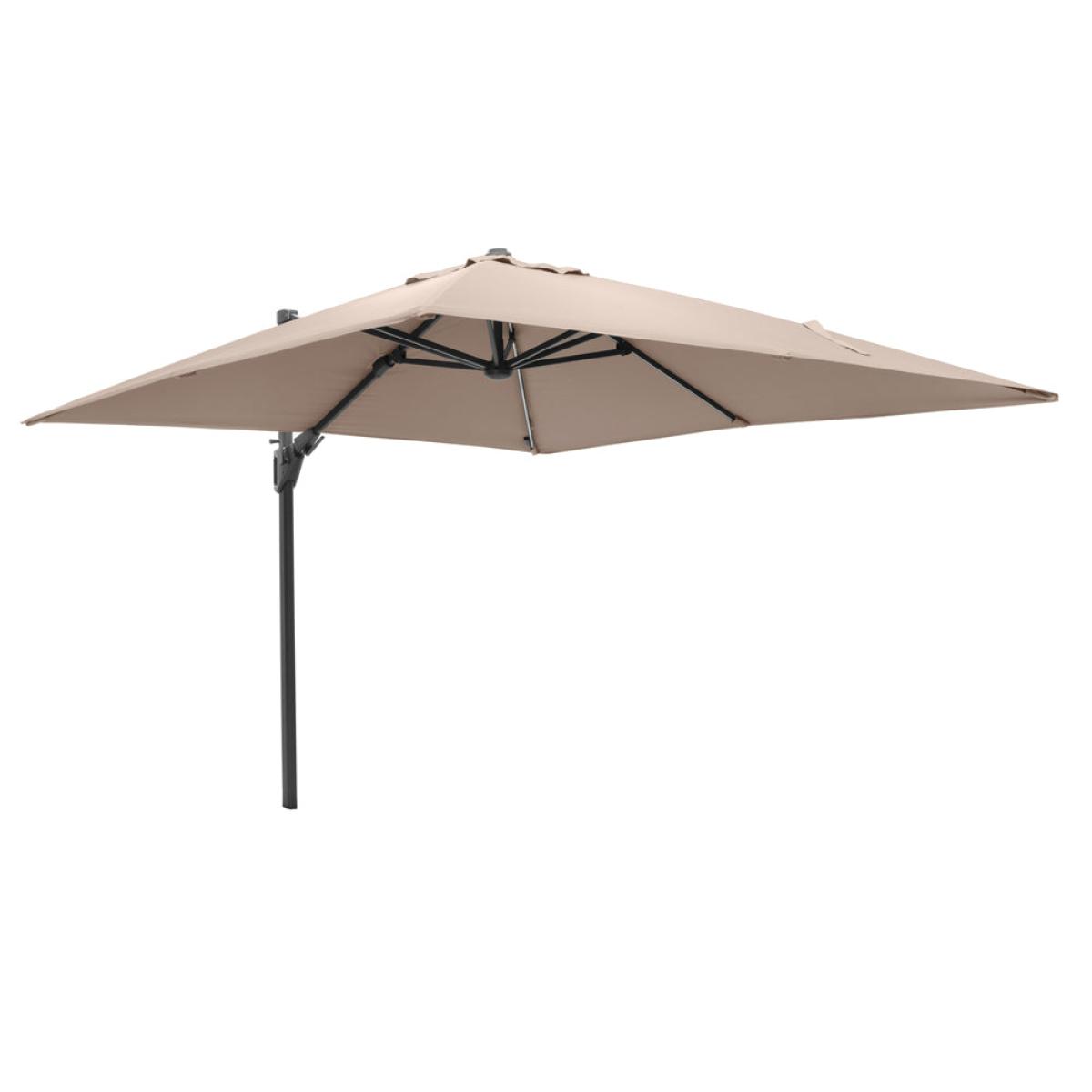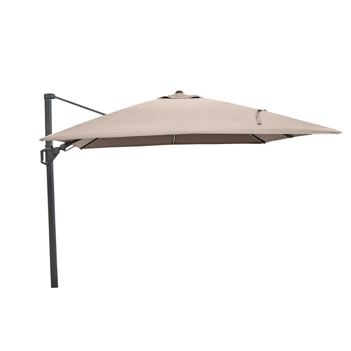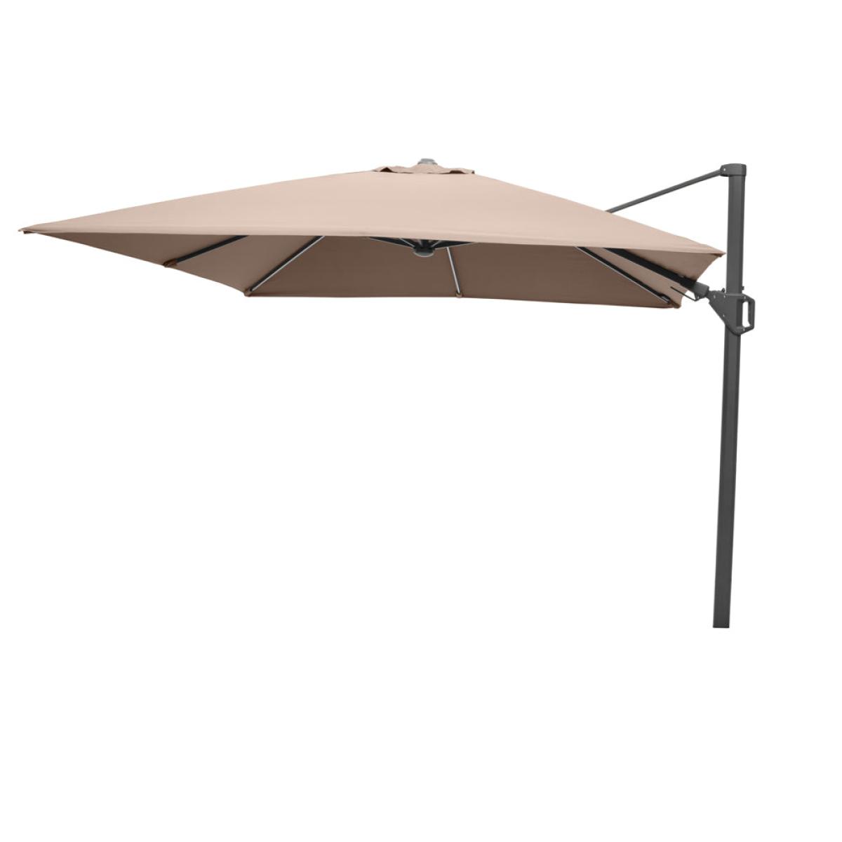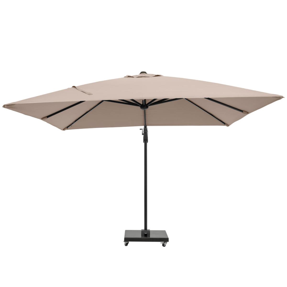 The stylish Glow Challenger T2 is a free-arm parasol that makes it possible to enjoy the summer days for longer with integrated warm white LED lighting in the ribs. The light can be switched to create direct lighting, shining both upwards and downwards, or alternatively switch the light to shine solely upwards if you fancy a more ambient, relaxed feel. The Glow parasol is wireless and comes with two rechargeable batteries that last up to 3 hours and can be charged using the USB charger included, making this a reliable choice in comparison to similar parasols on the market that rely on solar panels. Our T2 Parasols offer a double tilt system ensuring the full movement of the parasol without any movement of the base. You can tilt the parasol from side to side or backward and forwards, and it can be held easily at any angle by simply locking it into place with a handy lever. The parasol can be moved around 360 degrees in a smooth and easy action, guaranteeing shade wherever you desire. The mechanism of the parasol is durable stainless steel and encased in a strong powder-coated aluminium housing, meaning no rust or corrosion. The durability and strength of the parasol is further enhanced with its robust powder-coated aluminium pole and the tension springs that keep the fabric taught, secure, and looking its best. The parasol, in stylish Taupe is made from luxurious premium-class fabric, which is water-repellent and dirt-resistant protecting you from the elements and also the sun’s UV rays. The fabric has been solution dyed giving it the advantage of keeping its colour for a lot longer than most other parasols on the market. We suggest using a cover to protect your parasol while not in use to maintain its quality, please see the Aerocover recommended below. All of our parasols are sold separately to our parasol bases enabling you to choose the correct base for your chosen parasol. Please see our recommended base below.