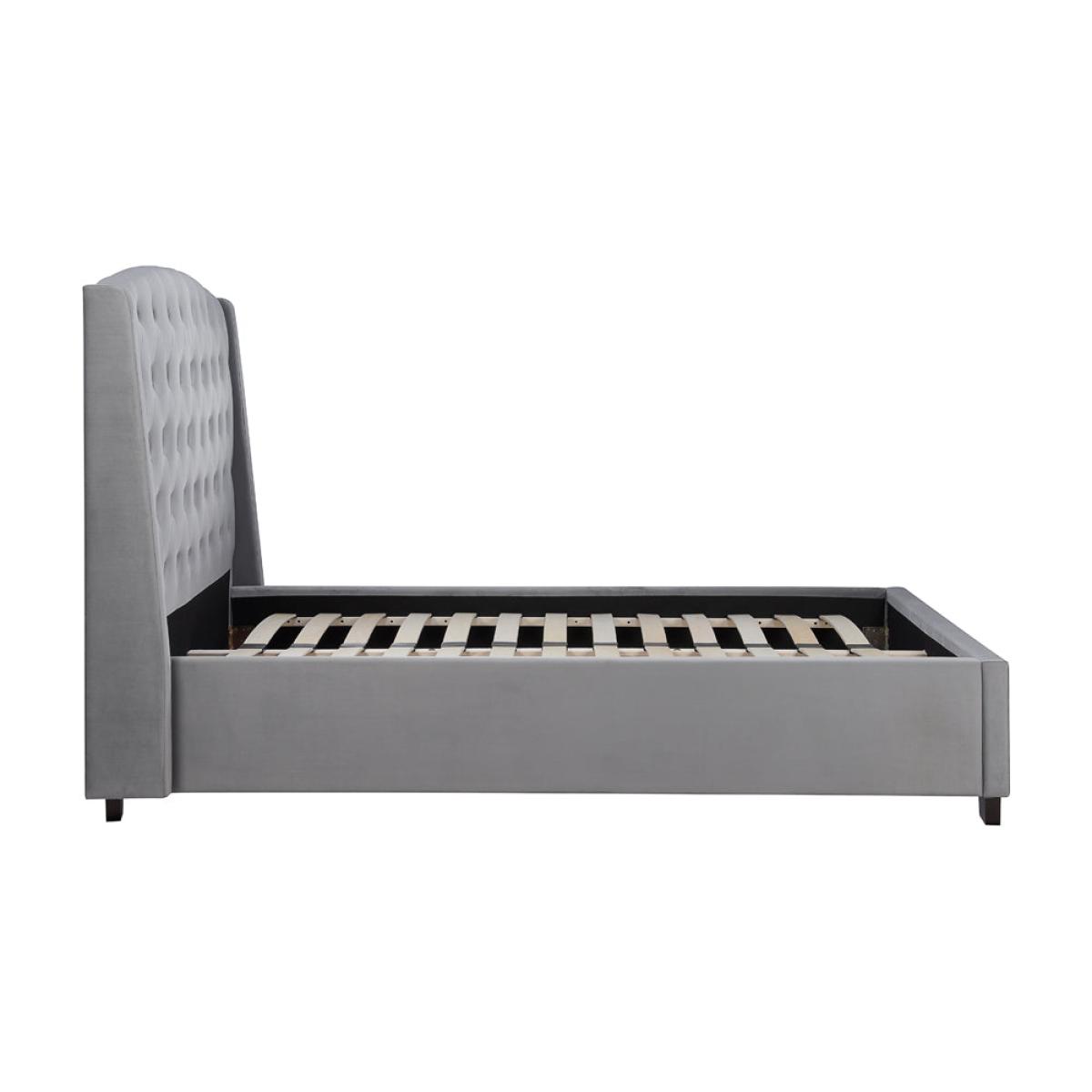 Make a grand style statement with this elegant contemporary bed frame. The Bailey bed is upholstered in a luxurious grey velvet and features a wingback headboard with beautiful tufted detailing. Featuring a sprung slatted base to give natural bounce, this bed adjusts to where pressure is most exerted for greater comfort. Add a touch of elegance to any style bedroom with the Bailey Bed! The maximum weight load for the 4"6 frame is 300 kg, the 5" frame is 400 kg, and the 6" frame is 450 kg. Please note: Olivia's beds are only suitable for a UK standard size mattress and the recommended maximum mattress height is 305 mm. Dimensions: Double - H: 130 x W: 160 x D: 209 cm. Kingsize - H: 130 x W: 174 x D: 220 cm. Super Kingsize - H: 130 x W: 203 x D: 220 cm Materials: Polyester Assembly Required: Yes Care Instructions: Fabric can be gently brushed or lightly vacuumed to remove any dust. With any spillages, take immediate action to remove excess liquid. Do not rub or use any detergents. Always follow cleaning instructions included in the assembly instructions