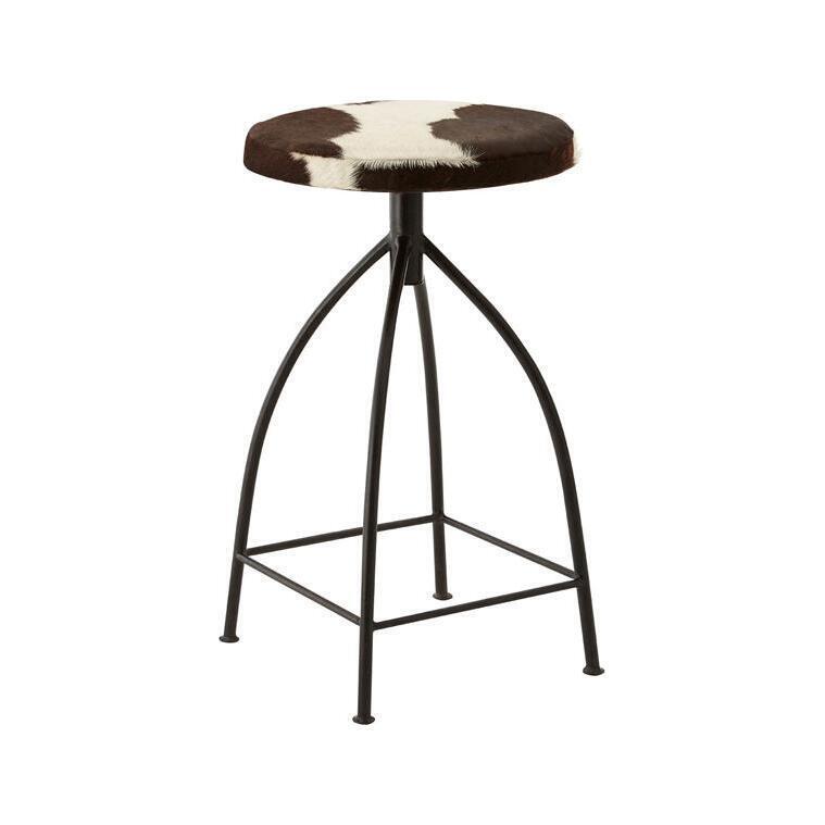 A stylish feature at your kitchen bar, the Boho stool will provide a statement piece in any setting with its unique cowhide design. The metal frame effortlessly curves ensuring strength and style, further accentuating the distinct design of the stool. The round seat is upholstered in brown and white cowhide giving the stool some designer charm that will stand out in any setting. Sitting next to your kitchen bar, the minimalistic base will match your surrounding with little fuss. Pull up the Boho stool and add a touch of chic to your decor. *This item is handcrafted so please expect slight variations to the finish*.