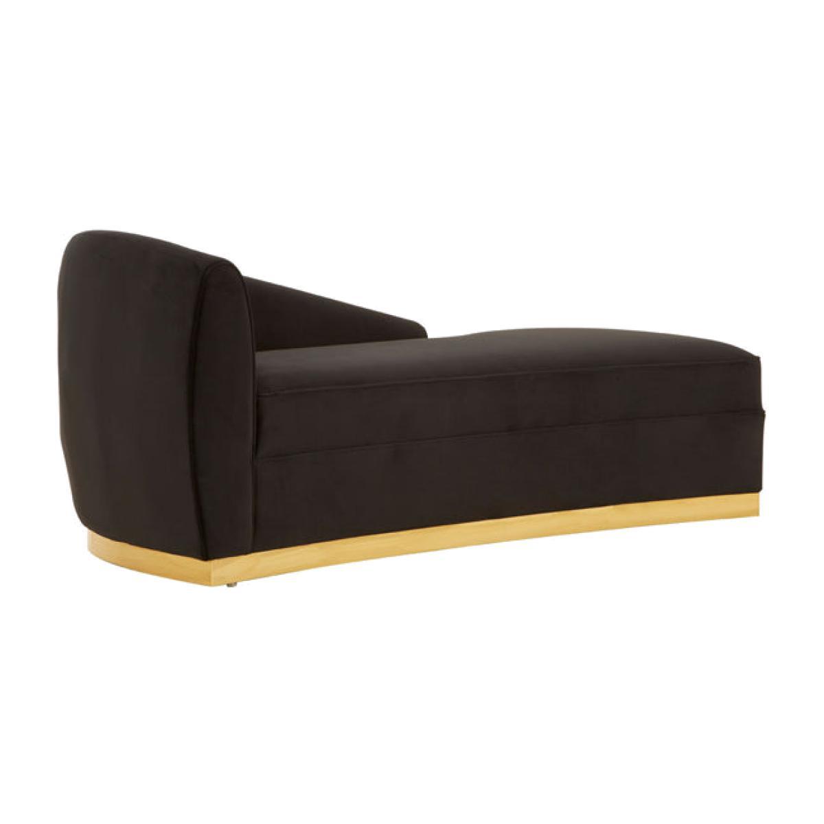 This stylish chaise longue has a sweeping left arm design and thick cushioning that makes a comfortable place to recline. The velvet is coloured black, and the sleek stainless steel trim at the base is finished gold for a luxe contrast. *Moot Trading Ltd is not a lender and acts only as an introducer. The credit product is provided by Klarna Bank AB (publ). Credit is only available to permanent UK residents aged 18 and over, subject to status. Terms and conditions apply. Please note that the following products are not regulated by the FCA: Pay in 30 days and Pay in 3 instalments. Read More.