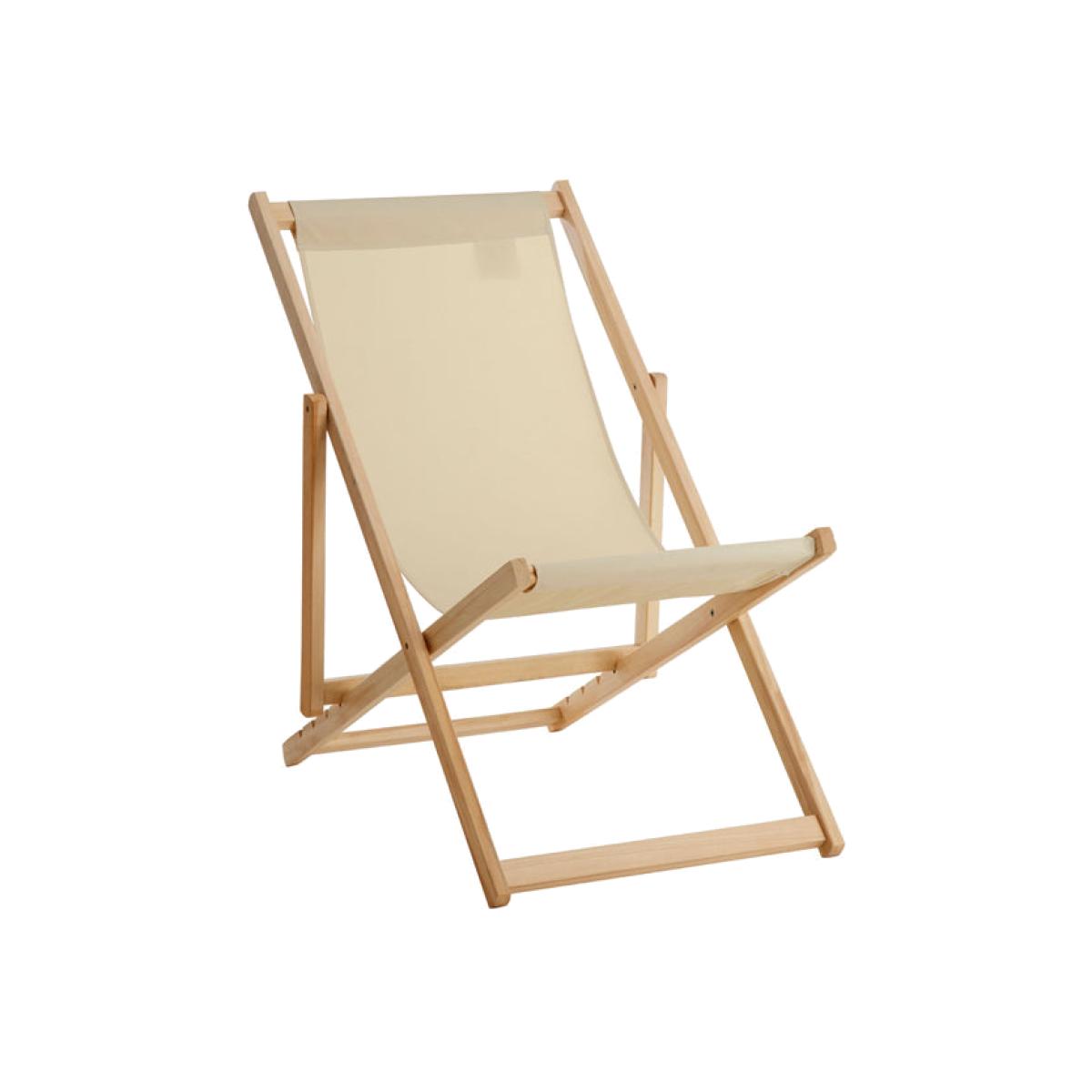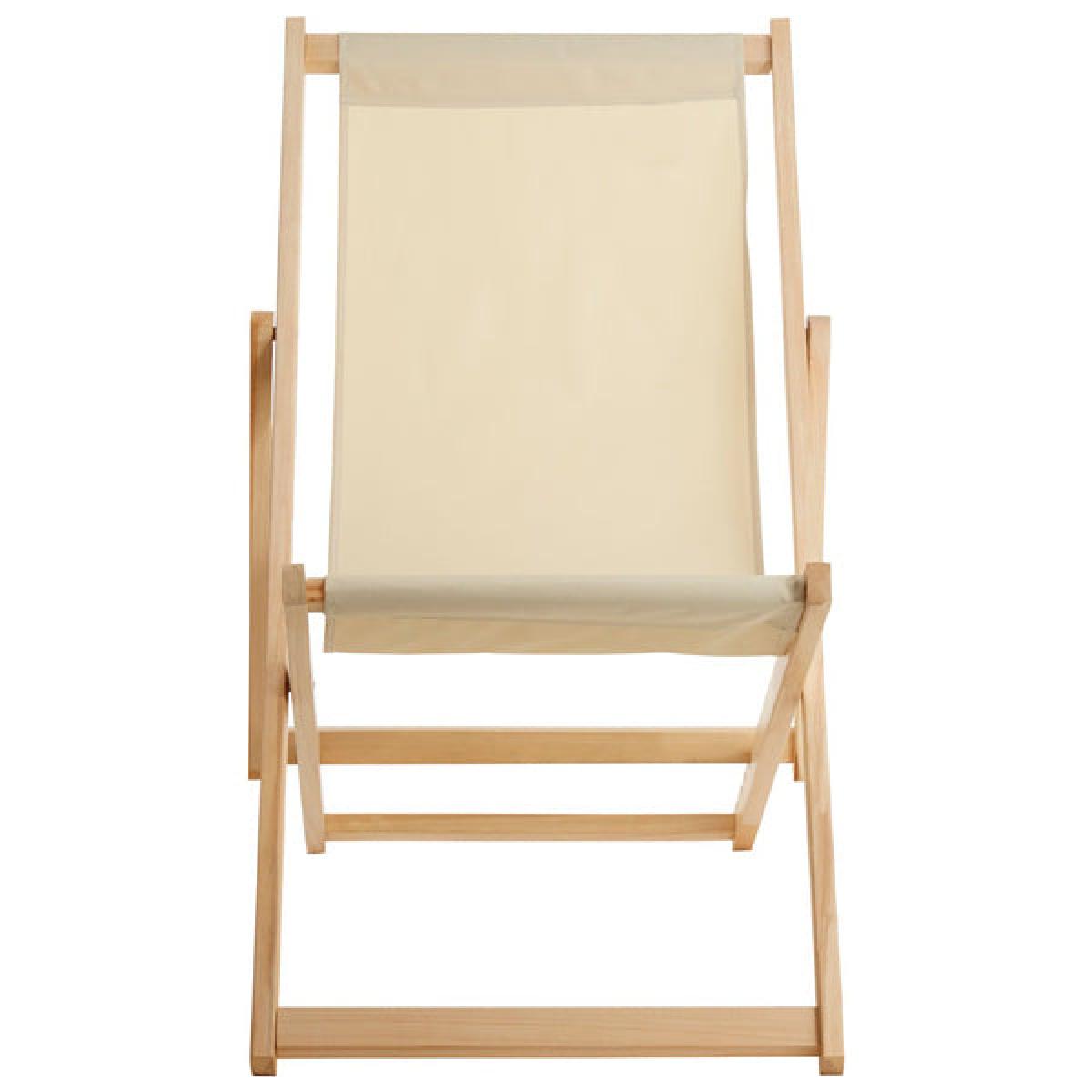 This chair has a tough, solid hardwood frame which has a natural colour that gives it a fresh and light appeal. Notches in the rear legs allow the seating position to be adjusted from a lazy recline to a more upright style. The cream and white striped sling means that it adds a subtle and modest accent to the patio and garden. We would recommend that this furniture be covered or brought back inside when not in use. They should not be left exposed outside. Dimensions: W:59 x D:86 x H:100 cm
