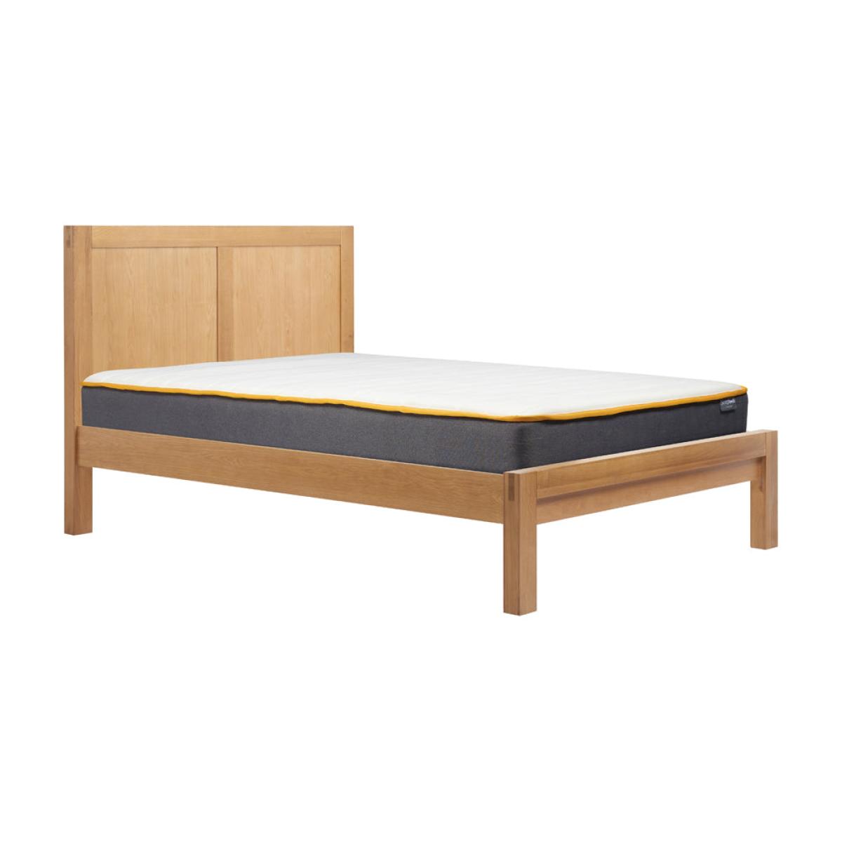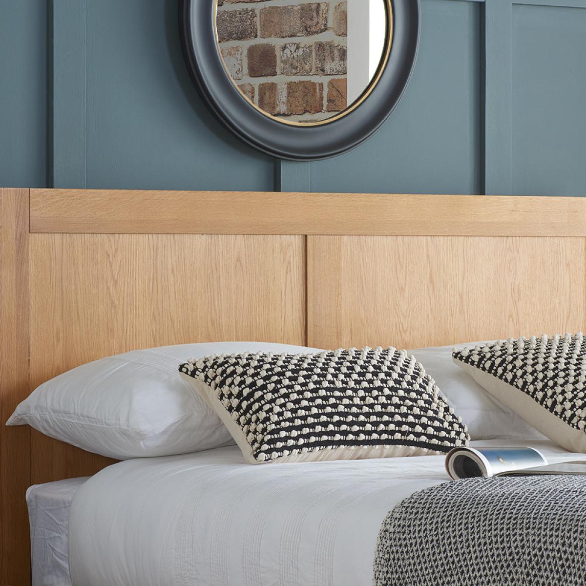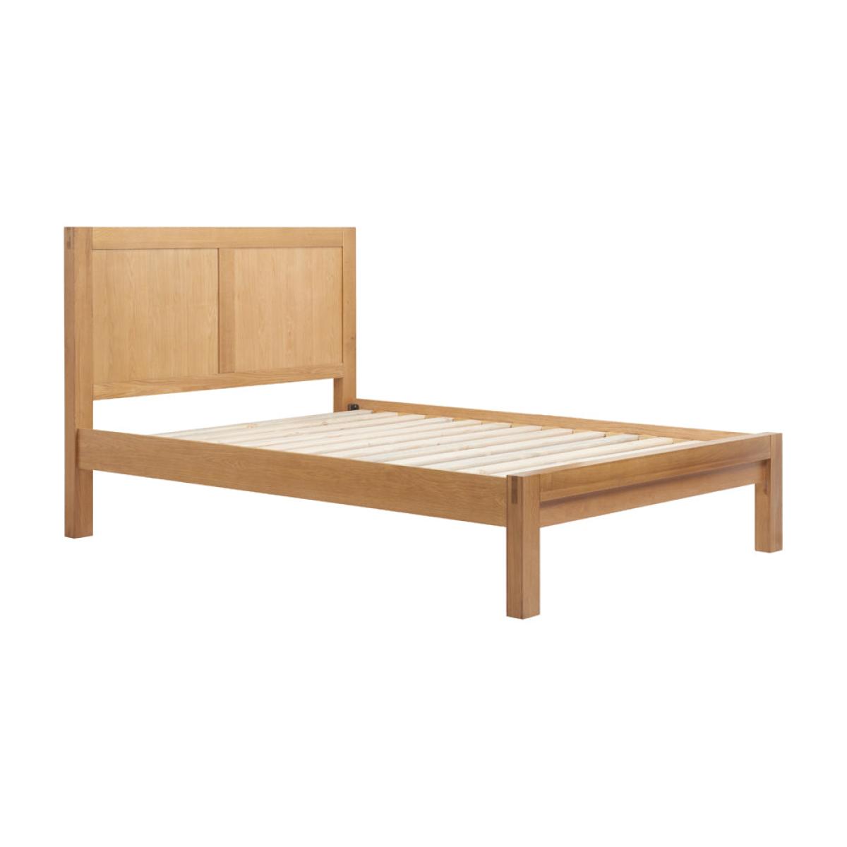 Sleek and stylish, the Belvedere bed is simple and well-crafted making it an ideal addition to your bedroom. Constructed from sturdy solid oak the Belvedere bed features a classic construction with a solid detailed headboard. The Belvedere bed is an ageless wooden bed frame sure to suit your decor. This frame has solid slats ideal for a firmer mattress. Please note: Olivia's beds are only suitable for a UK standard size mattress. Dimensions: Double - H: 110 x W: 145 x D: 204 cm. Kingsize - H: 110 x W: 160 x D: 215 cm Materials: Oak Assembly Required: Yes Care Instructions: Never use silicon or wax based furniture polish as this will leave a residue behind on the product. Gently dust using a soft buffing cloth. Make sure spills are blotted away quickly to avoid lasting stains. To remove any marks use a clean, slightly damp cloth. Never use detergents on any wood surfaces. Always follow cleaning instructions provided in the assembly instructions