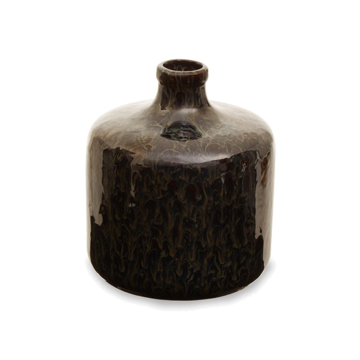 A dark blue glaze gives a beautiful marbled swirl effect to this gorgeous vase by Olivia's. Elegant and understated, it will look incredible styled on shelves, a mantelpiece or a console table in a contemporary or neutral home. It has an overall dark brown high-shine effect; however, on closer inspection, you can see a beautiful, subtle dark blue swirl cast over it. This bottle vase has a short, rounded body and a small bottle neck opening, meaning it is perfect for displaying stems of foliage or pampas. The blue glaze vase's classic design means it would fit beautifully into many different home décor schemes. Dimensions: H: 200 x W: 180 x D: 180 cm. Material: Stoneware