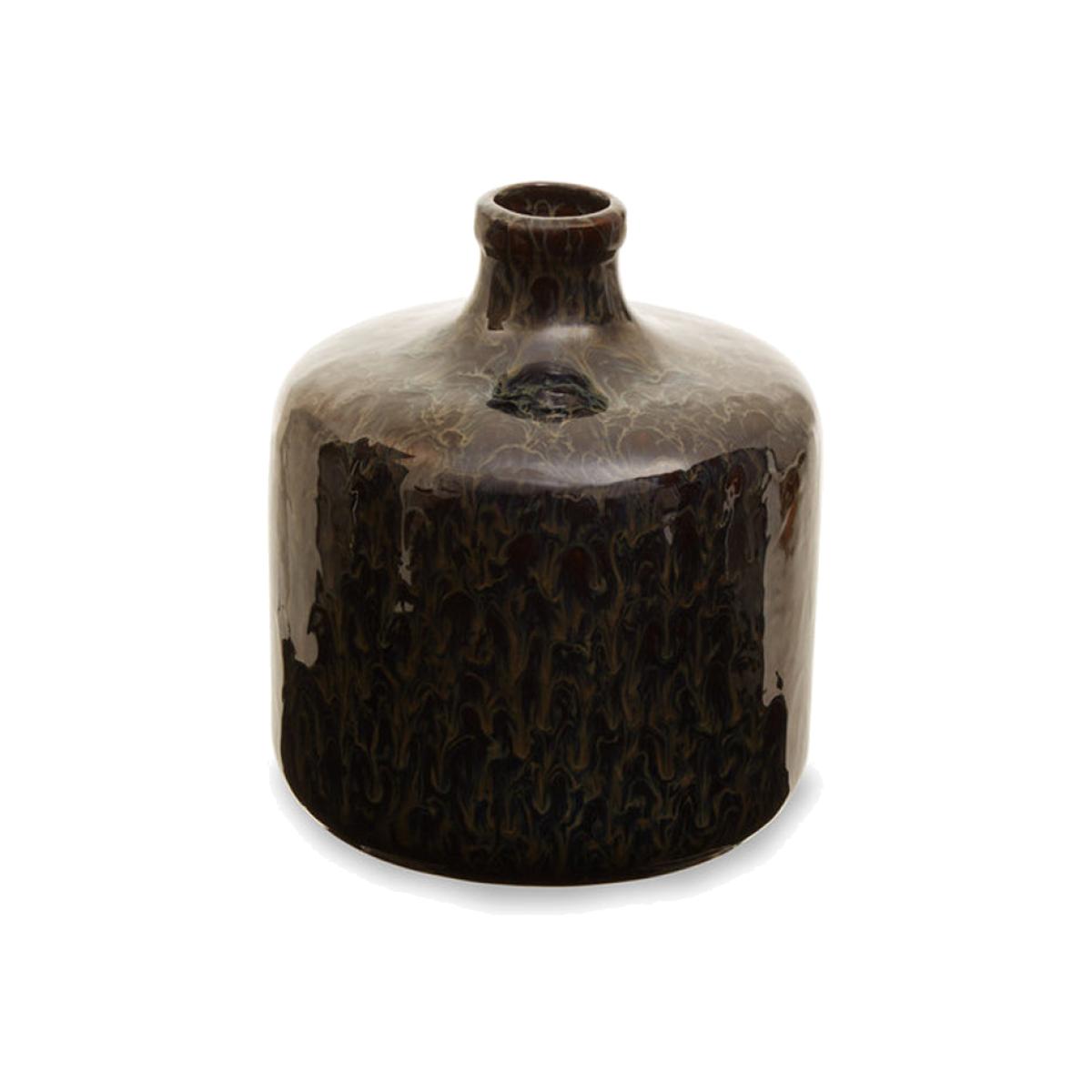 A dark blue glaze gives a beautiful marbled swirl effect to this gorgeous vase by Olivia's. Elegant and understated, it will look incredible styled on shelves, a mantelpiece or a console table in a. View More. A dark blue glaze gives a beautiful marbled swirl effect to this gorgeous vase by Olivia's. Elegant and understated, it will look incredible styled on shelves, a mantelpiece or a console table in a contemporary or neutral home. It has an overall dark brown high-shine effect; however, on closer inspection, you can see a beautiful, subtle dark blue swirl cast over it. This bottle vase has a short, rounded body and a small bottle neck opening, meaning it is perfect for displaying stems of foliage or pampas. The blue glaze vase's classic design means it would fit beautifully into many different home décor schemes.