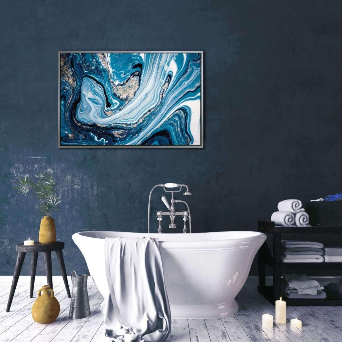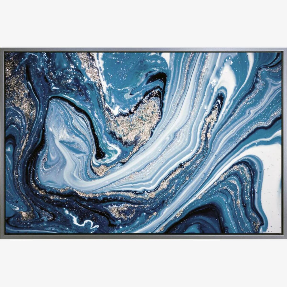 This artwork is hand crafted and made to order for you. A striking piece of blue abstract artwork, embellished with silver Metal Leaf and finished in our Silver L-Shaped frame. Dimensions: H: 62 x W:. View More. This artwork is hand crafted and made to order for you. A striking piece of blue abstract artwork, embellished with silver Metal Leaf and finished in our Silver L-Shaped frame.