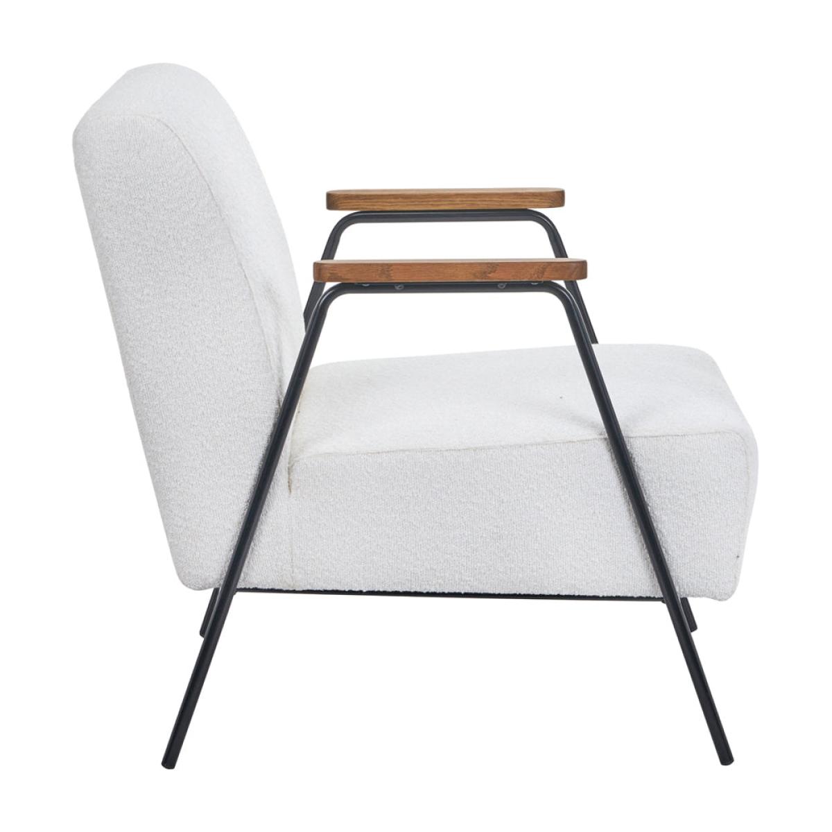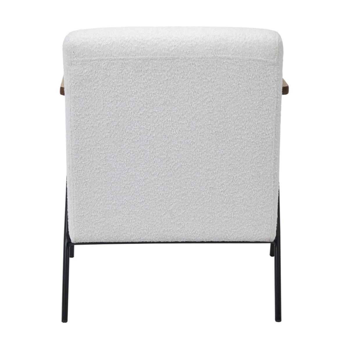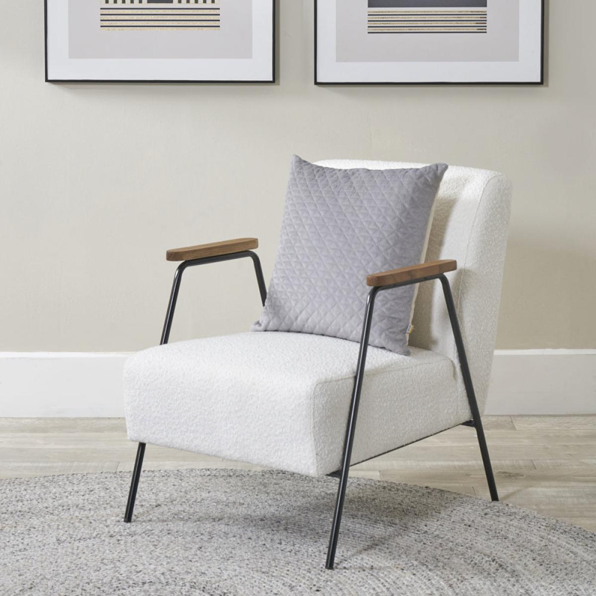 The ultimate occasional chair! Stunning white Bouclé has contrasting angular, black metal legs and wooden arms. Our Matera Chair looks great as a stand-alone accent chair or style in pairs around a coffee table!