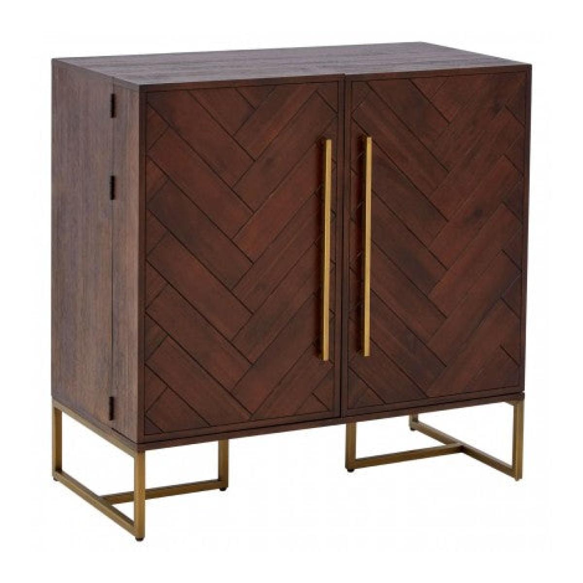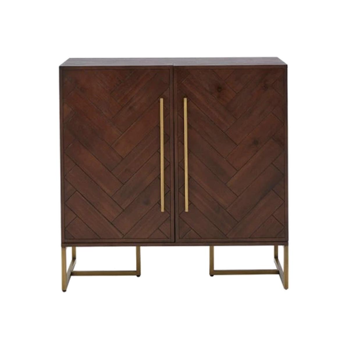 The Liv by Olivia’s Brooke drinks cabinet is a darkly mysterious and intriguing piece that will suit a range of interior themes. This grand lady will introduce charm into your space with her stunning wood panels and antique brass detailing. She has been lovingly crafted from acacia veneer to show off the natural contrasting tones and oozes rustic charm. At the front, there are two doors opening up to the large interior storage space for dinner sets and wine glasses. Her strong and angular metal legs pick up the antique brass effect theme and add a touch of stunning chic. Dimensions: W:100 x D:50 x H:100 cm Materials: MDF, Metal, Acacia Veneer, Antique Brass Fixtures. Weight: 72kg. Notes: Comes assembled. Features herringbone pattern. Care:Wipe with clean dry soft cloth. Do not use abrasive cleaners