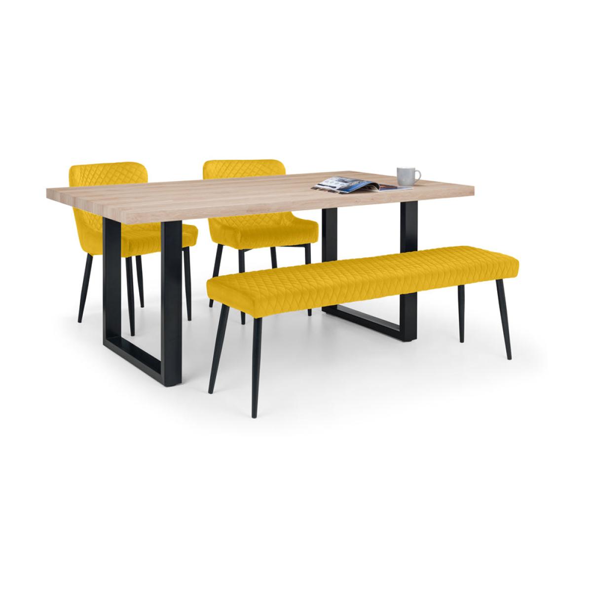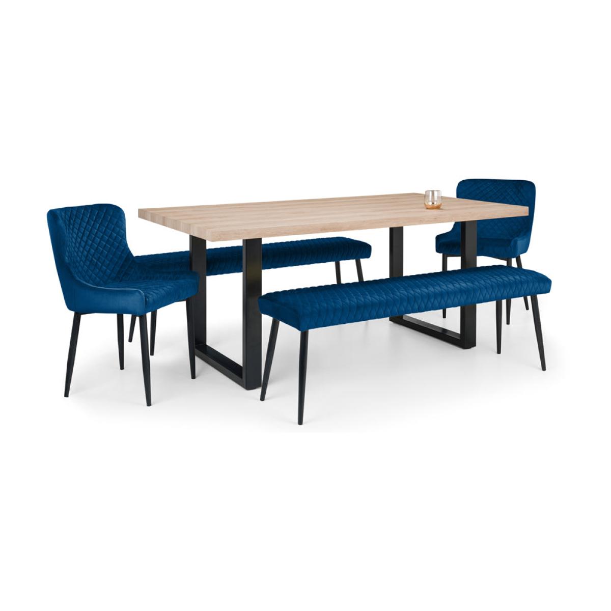 The Berwick dining table has been designed with a rustic oak top with emphasised natural wood grain. The industrial-style, black legs offer a stable structure that contrasts with the oak – providin. View More. The Berwick dining table has been designed with a rustic oak top with emphasised natural wood grain. The industrial-style, black legs offer a stable structure that contrasts with the oak – providing a statement piece for your home. Due to its versatility, the Berwick dining table can be paired with a variety of chairs/benches, such as Julian Bowen’s Luxe range, or the new Brookyln dining chairs in charcoal grey.
