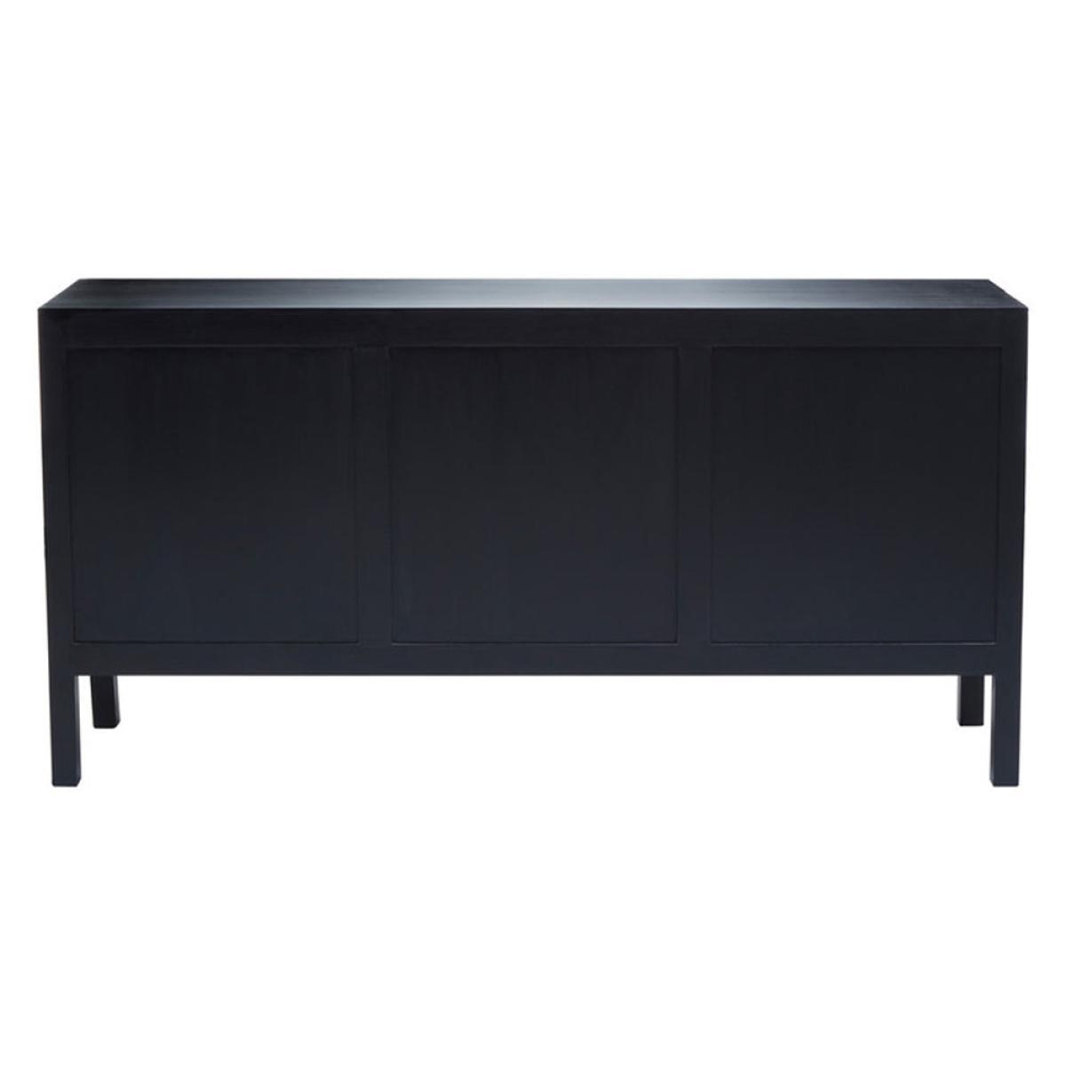 Stylish rattan, black finished wood and hints of brass are combined in this attractive Cali sideboard. Behind the three doors lies plenty of practical storage space. The rightmost door is a separat. View More. Stylish rattan, black finished wood and hints of brass are combined in this attractive Cali sideboard. Behind the three doors lies plenty of practical storage space. The rightmost door is a separate cupboard unit while the other two doors open on a single compartment. Both are divided by a single shelf and each door is equipped with a brass finished handle. The styling of this sideboard is ideally suited to a Nordic home décor theme but will also sit well with other rattan furnishings or similar colour schemes. The Cali sideboard stands 76cm tall and is 150cm in length and 40cm deep.