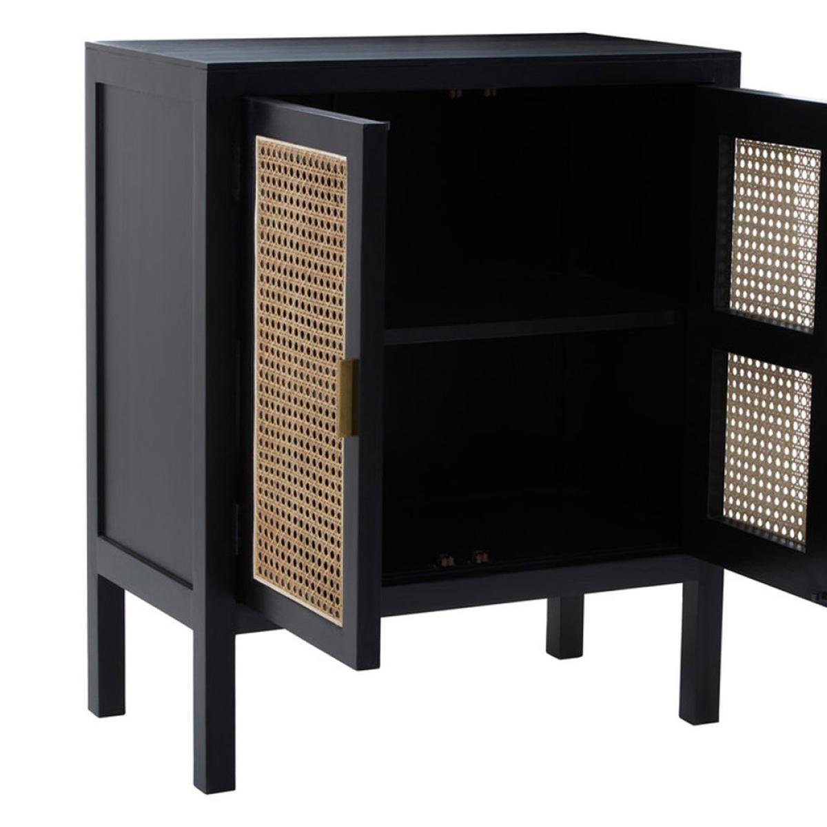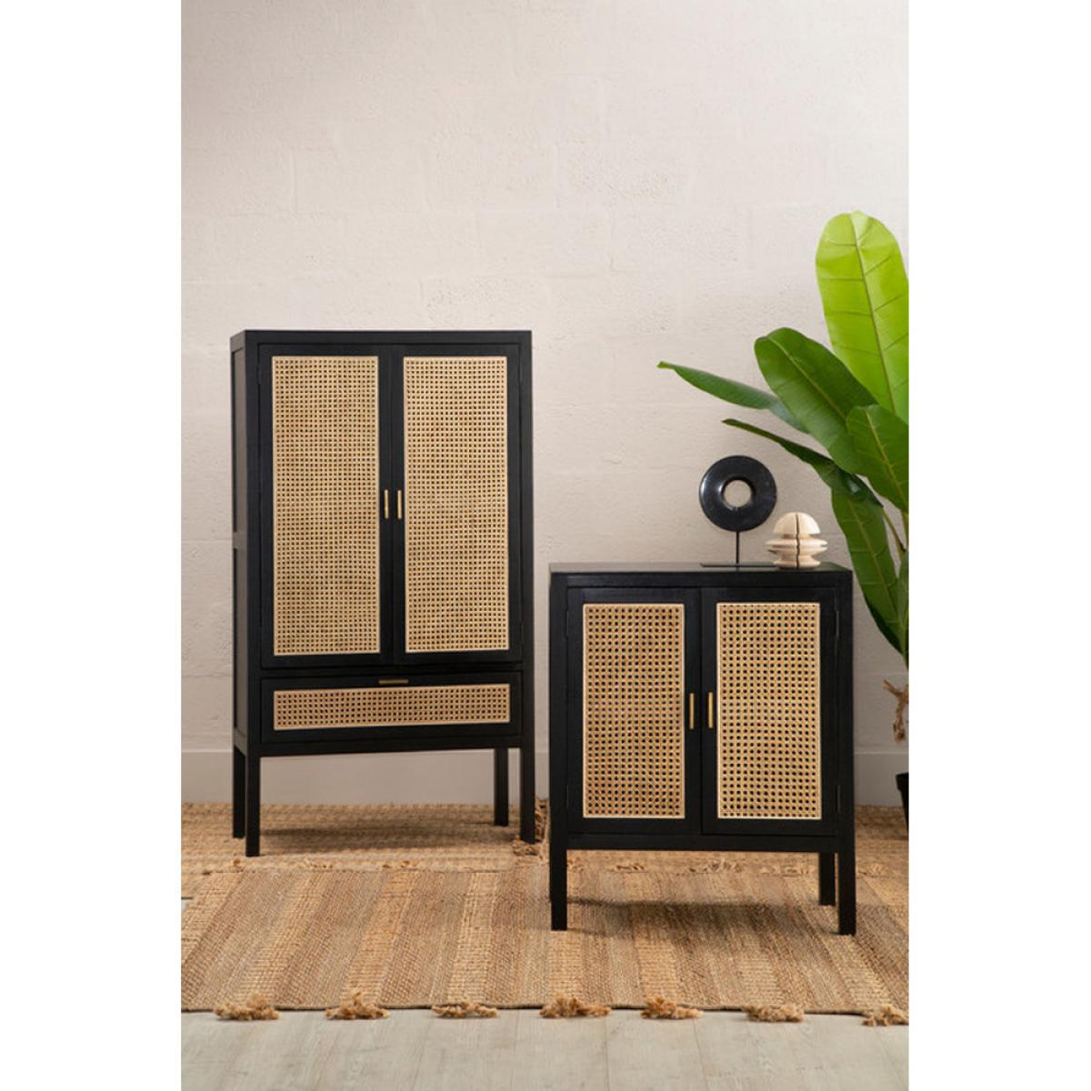 With plenty of space for storage and sleek contemporary handles, Olivia's Cali two-door sideboard is a classic piece of furniture design that will be both useful and practical in any number of room. View More. With plenty of space for storage and sleek contemporary handles, Olivia's Cali two-door sideboard is a classic piece of furniture design that will be both useful and practical in any number of rooms in the home. The space inside is divided in half with a shelf to maximise use of the sideboard's height, with enough clearance to safely house large items or reference works. Combining the drama of black with contrasting natural rattan, this is a sideboard with lots of character that shows off the beauty of versatile rattan. The rattan design also means the sideboard's content will have excellent ventilation.