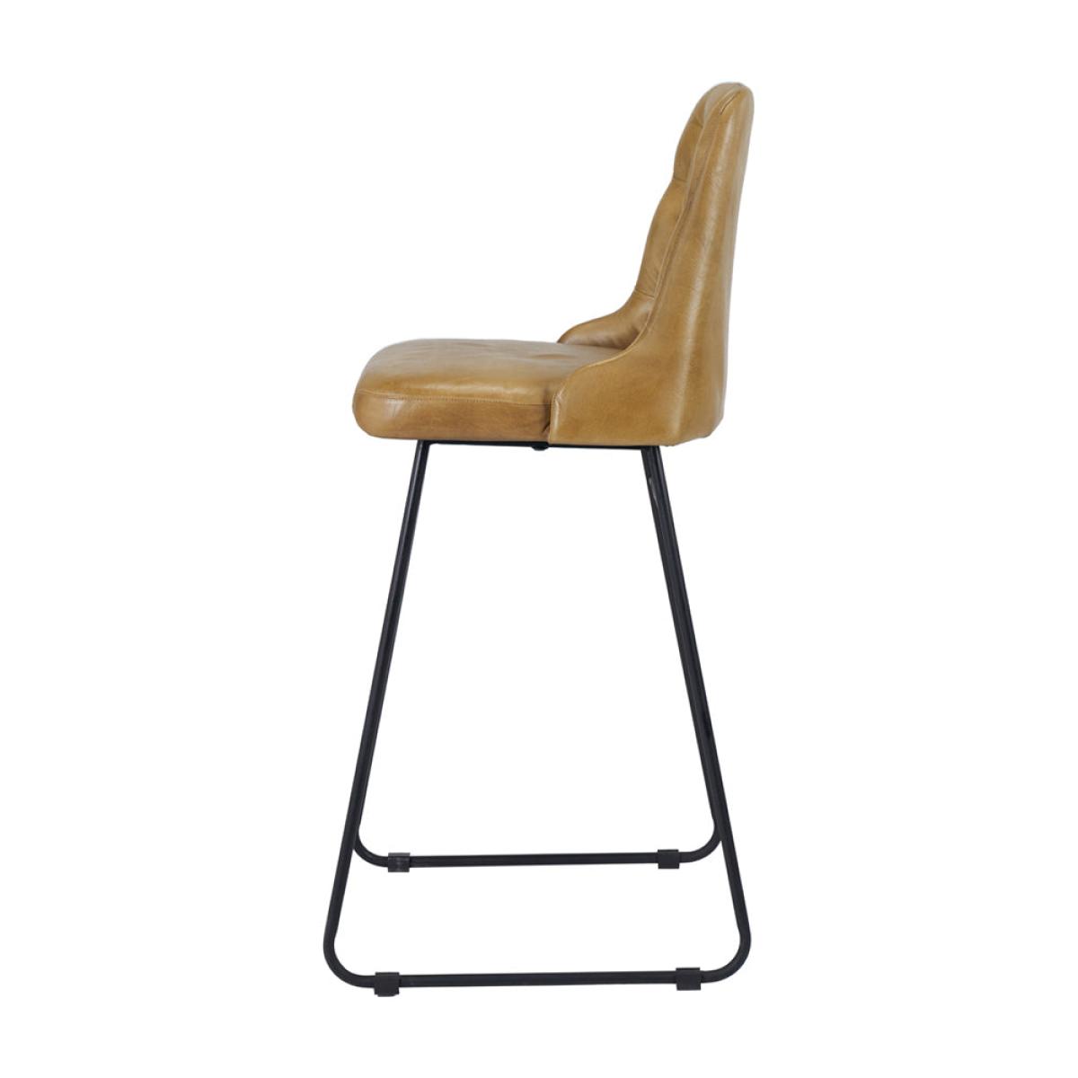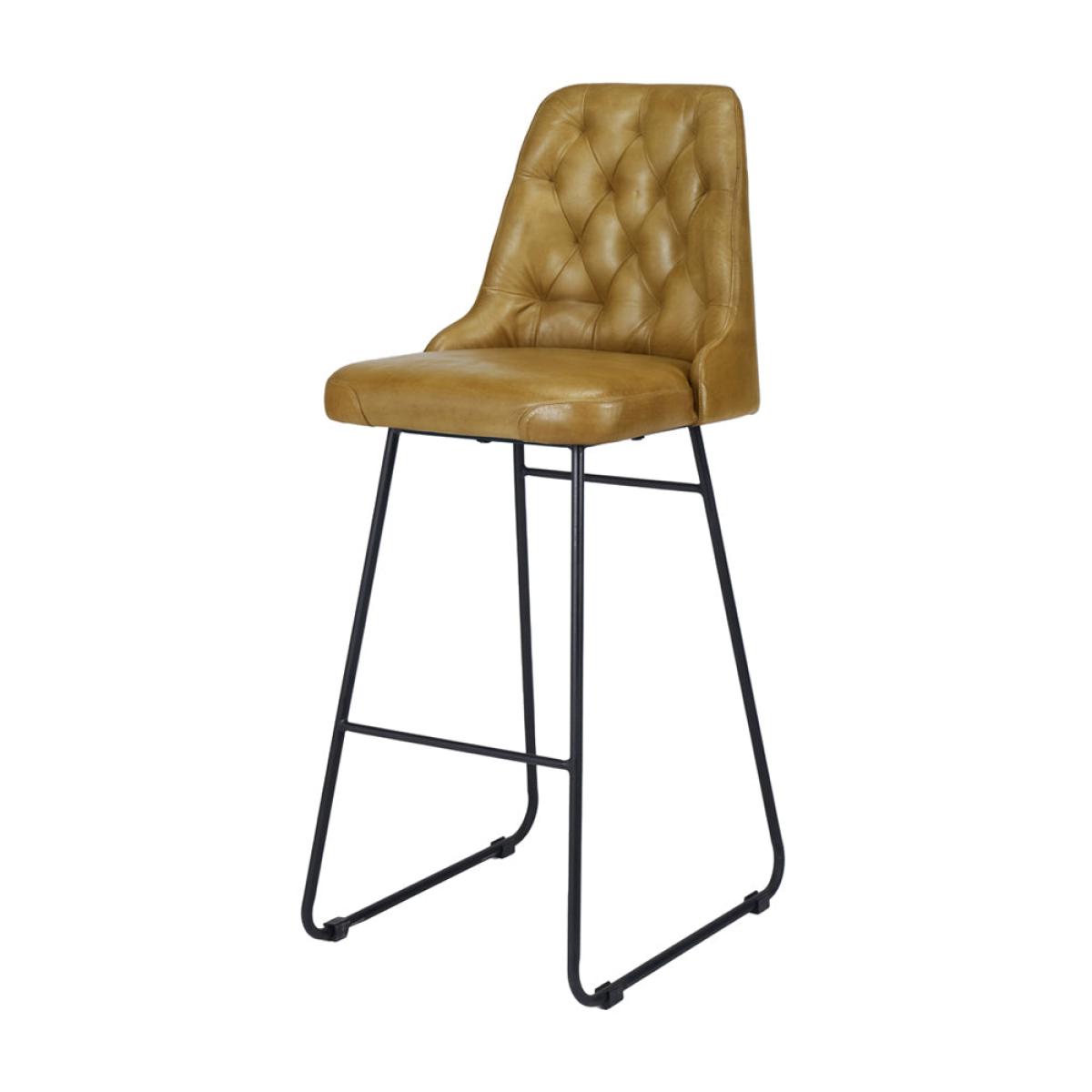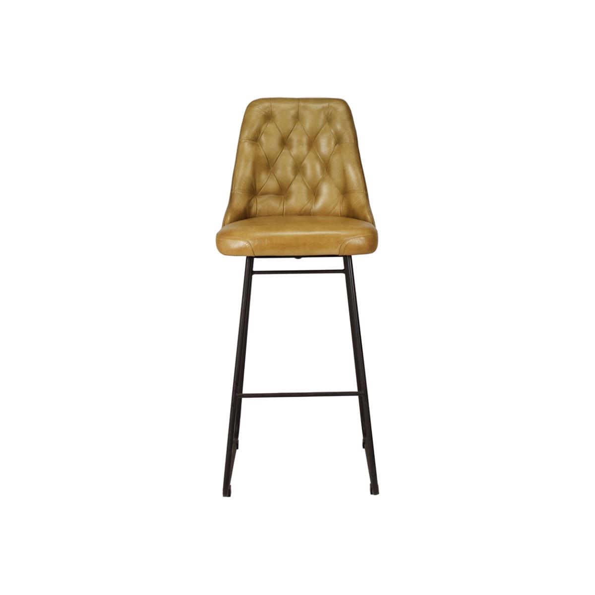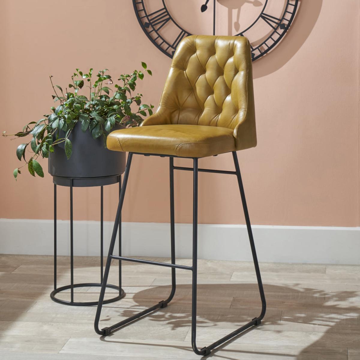 The Camille mustard leather bar stool with stylish black metal legs will make the perfect addition to your breakfast bar or kitchen island. The comfortable button back chair in striking mustard is sure to command attention.