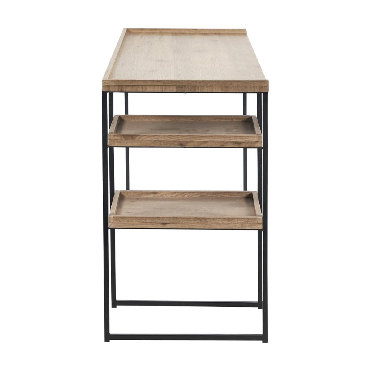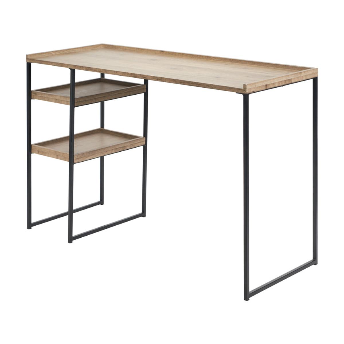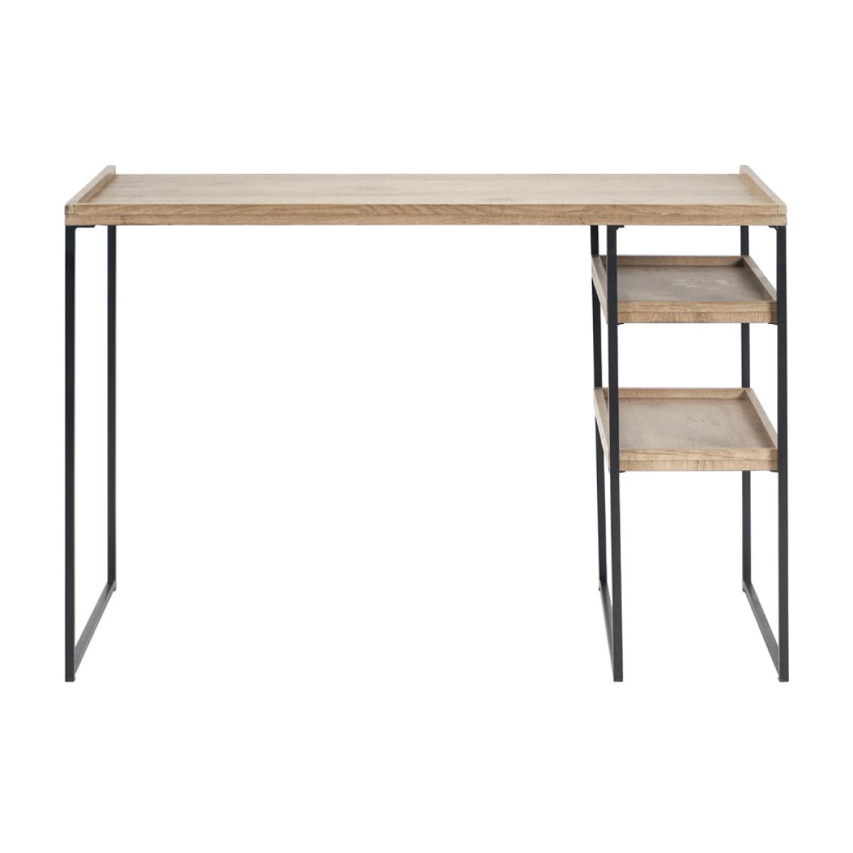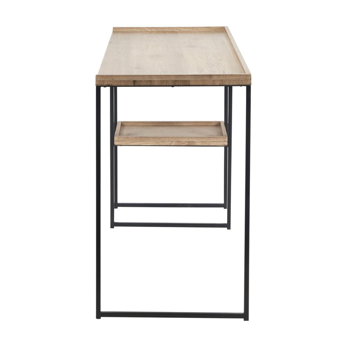 This 2 shelf desk in The Collection is functional and stylish. The matt black metal frame and natural wood veneer surfaces capture the on-trend industrial style perfectly. Striking and practical, the design of this 2 shelf desk offers ample storage for your papers.