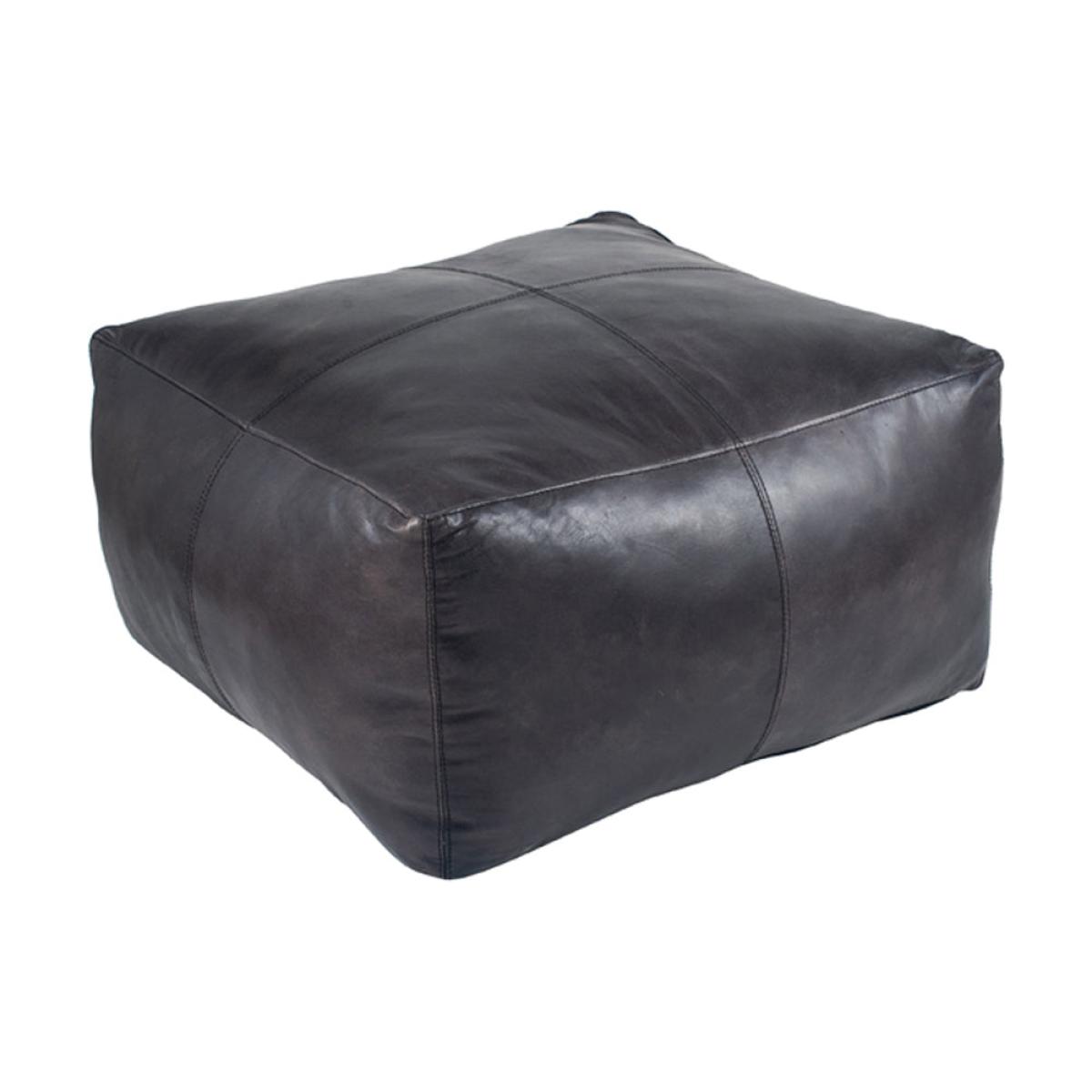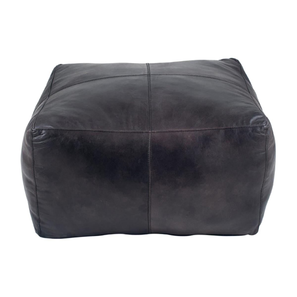 Olivia's Cassie Square Pouffe in Steel Grey Leather