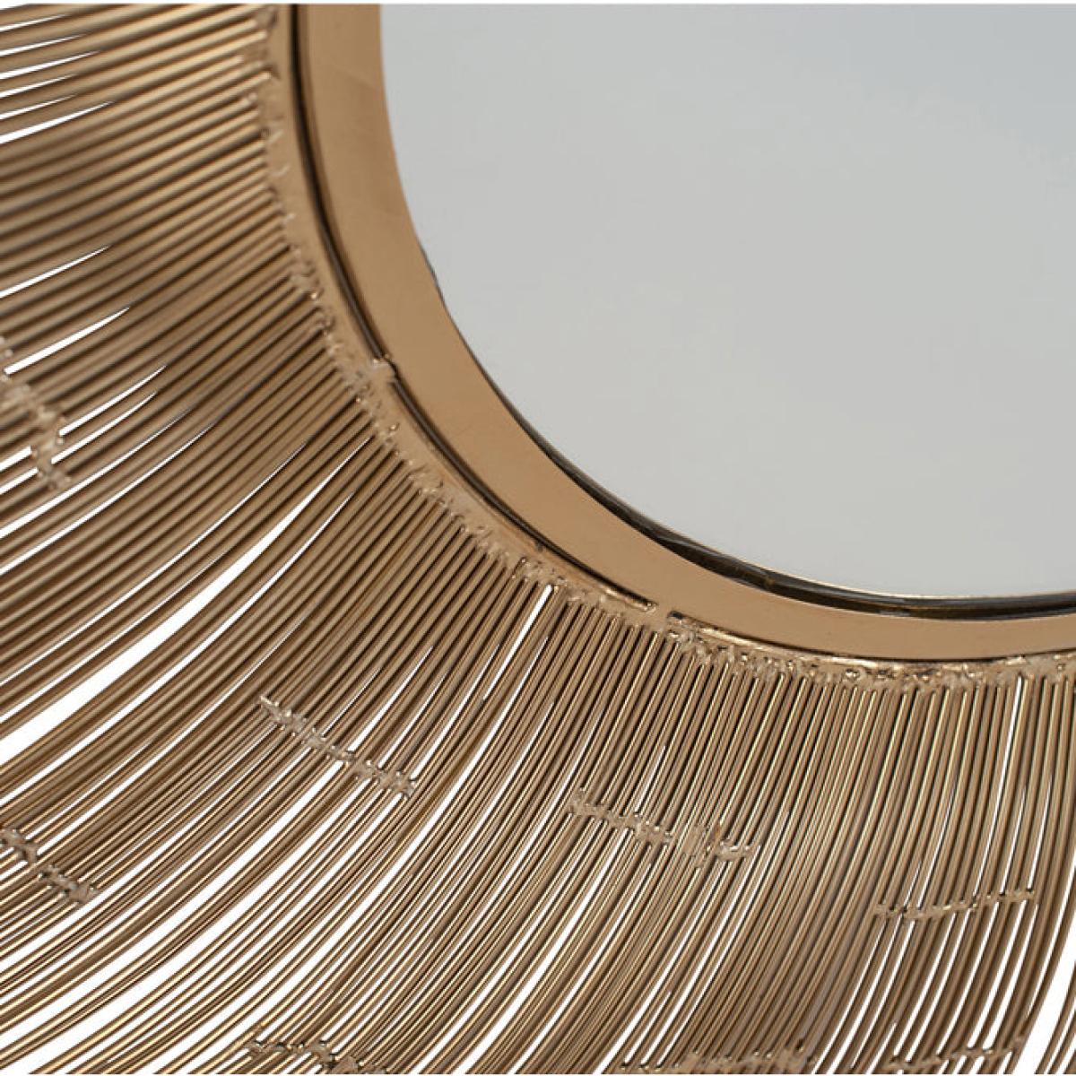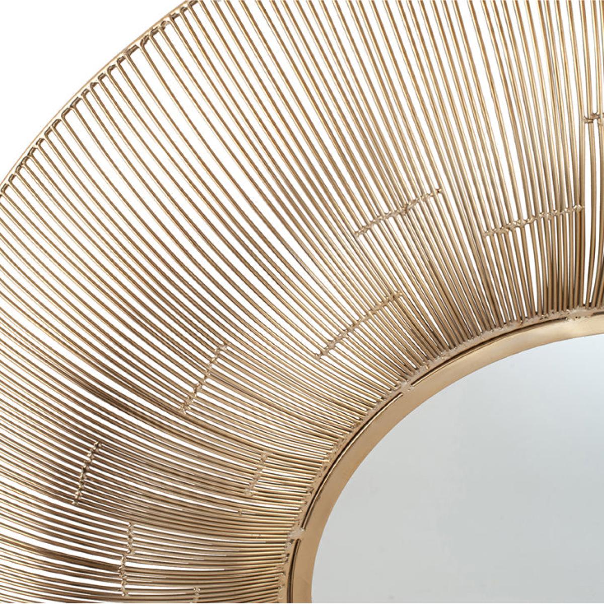 This beautifully proportioned round wall mirror features a stunning gold metal detail frame. The exquisite mirror will be the focal point of any room and creates a light and elegant space. This show stopper is also available in silver.