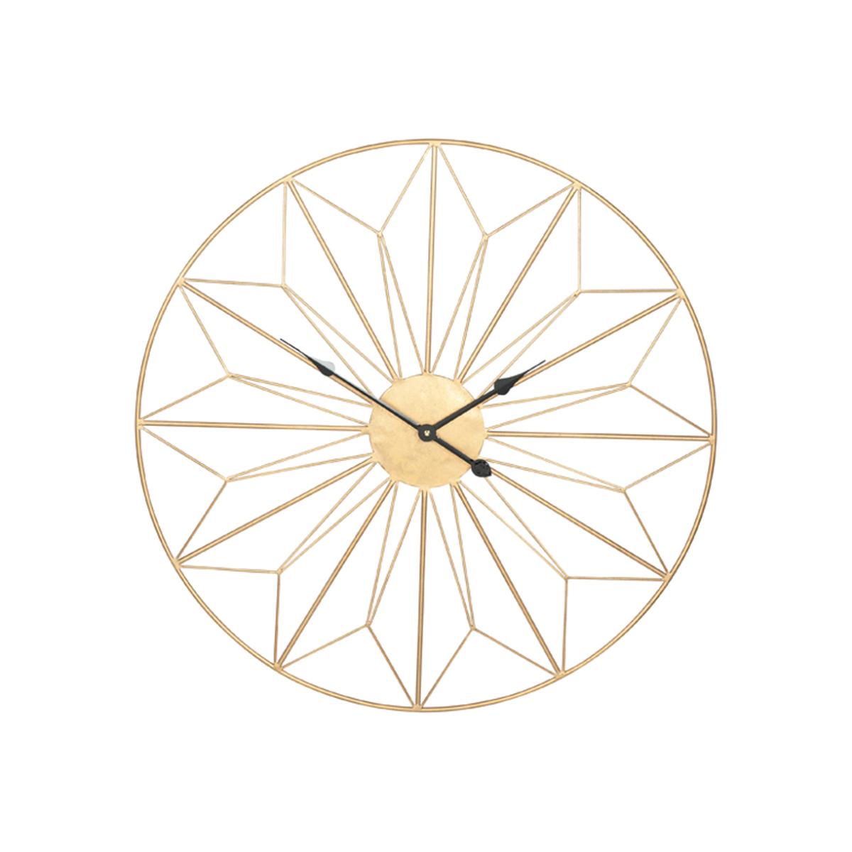 Make a statement on your wall with this geometric designed large metal wall clock finished in antique gold metal.