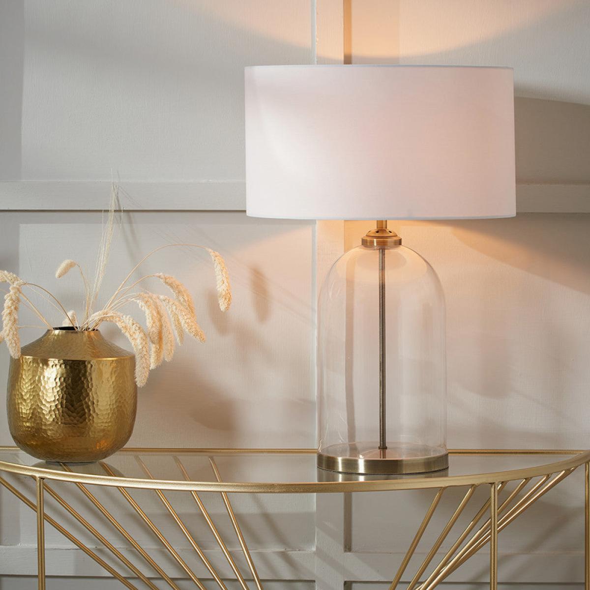 I love this lamp’s versatile blend of clear glass and antique brass, which creates a subtle yet stylish statement. Perfect for both contemporary and vintage-inspired interiors, it works especially well on bedside tables or sideboards where its refined detailing can shine. To style it effectively, pair it with neutral or muted tones for a calming effect, or add some textured accessories nearby to enhance its elegant simplicity. Practical tip: use a warm Edison bulb inside to emphasise its vintage charm and create a cosy ambiance in living rooms or bedrooms.