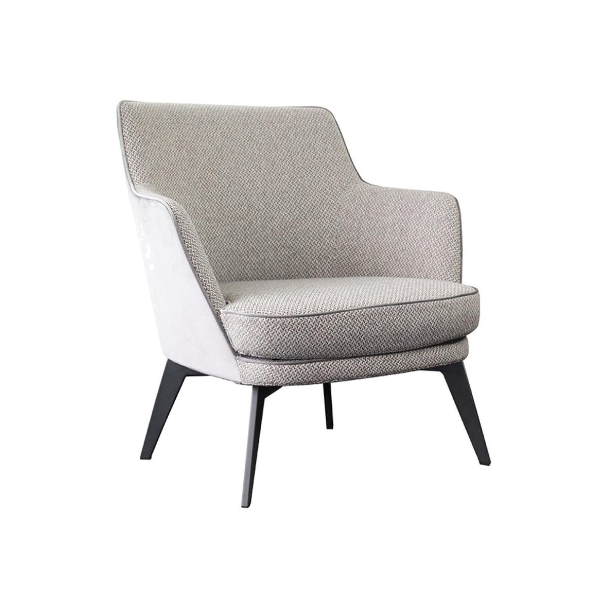 A timeless classic updated with the welcome addition of sleek contemporary styling, the Olivia's Connie armchair will be at home in any setting. Upholstered in fashionably neutral fabrics, the seat. View More. A timeless classic updated with the welcome addition of sleek contemporary styling, the Olivia's Connie armchair will be at home in any setting. Upholstered in fashionably neutral fabrics, the seat features an understated pattern that contrasts subtly with the plain grey fabric on the exterior areas and the piped seams for a sophisticated finish. It also features a wonderfully padded cushion for sumptuous comfort and total relaxation. The outline of this chair is a compelling mix of straight and curved edges, incorporating armrests for added support. The legs are black with clean lines to complete the appealing silhouette of this desirable piece of furniture.