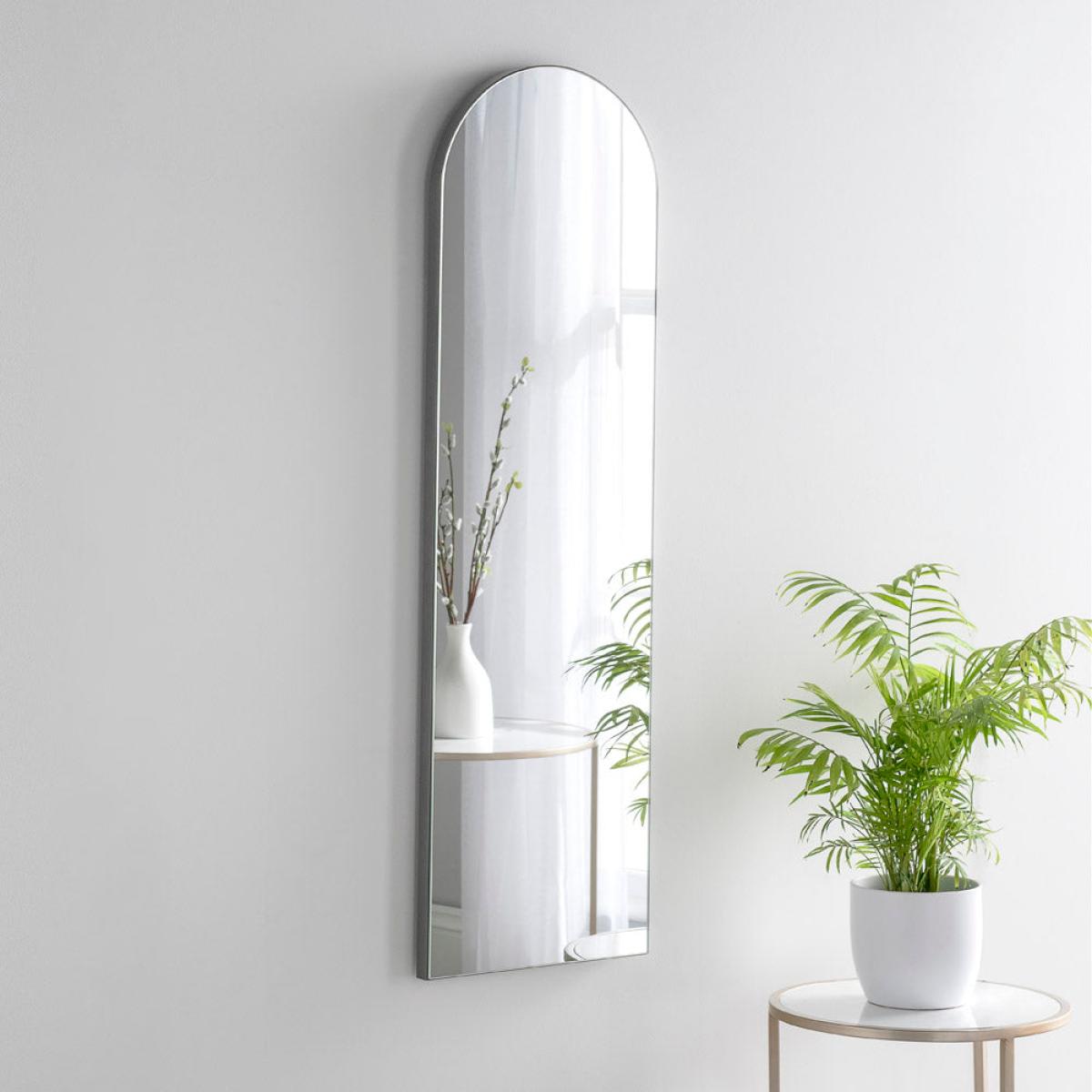 Minimal Arched top Vertical wall mirror. Available in a selection of three frame colour finishes to best suit your interior. The craftsmanship is clear to see with it's simple and sophisticated quality of finish. Only the finest quality raw materials have been used to construct this beautifully delicate looking wall mirror. It's simple design allows this mirror to be extremely versatile and would work in most room settings with a mix of different interior styles. Enhancing the interior to give a light and airy feel is what this mirror does best. Add a touch of the light and airy feel with this ultra stylish minimalistic wall mirror. Dimensions: H: 100 x W: 30 x D: 2 cm Materials: Wood/MDF/Glass. Orientation: Portrait. Fixing Type: Care Instructions:Wipe mirror glass clean with damp non-abrasive cloth. Wipe frame clean with no abrasive dry cloth