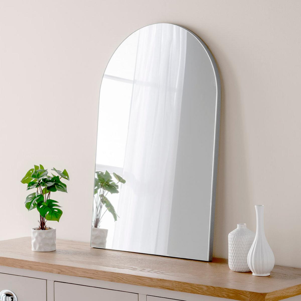 Minimal Arched top Vertical wall mirror. Available in a selection of three frame colour finishes to best suit your interior. The craftsmanship is clear to see with it's simple and sophisticated quality of finish. Only the finest quality raw materials have been used to construct this beautifully delicate looking wall mirror. It's simple design allows this mirror to be extremely versatile and would work in most room settings with a mix of different interior styles. Enhancing the interior to give a light and airy feel is what this mirror does best. Add a touch of the light and airy feel with this ultra stylish minimalistic wall mirror. Dimensions: H: 75 x W: 50 x D: 2 cm Materials: Wood/MDF/Glass. Orientation: Portrait. Fixing Type: Care Instructions:Wipe mirror glass clean with damp non-abrasive cloth. Wipe frame clean with no abrasive dry cloth