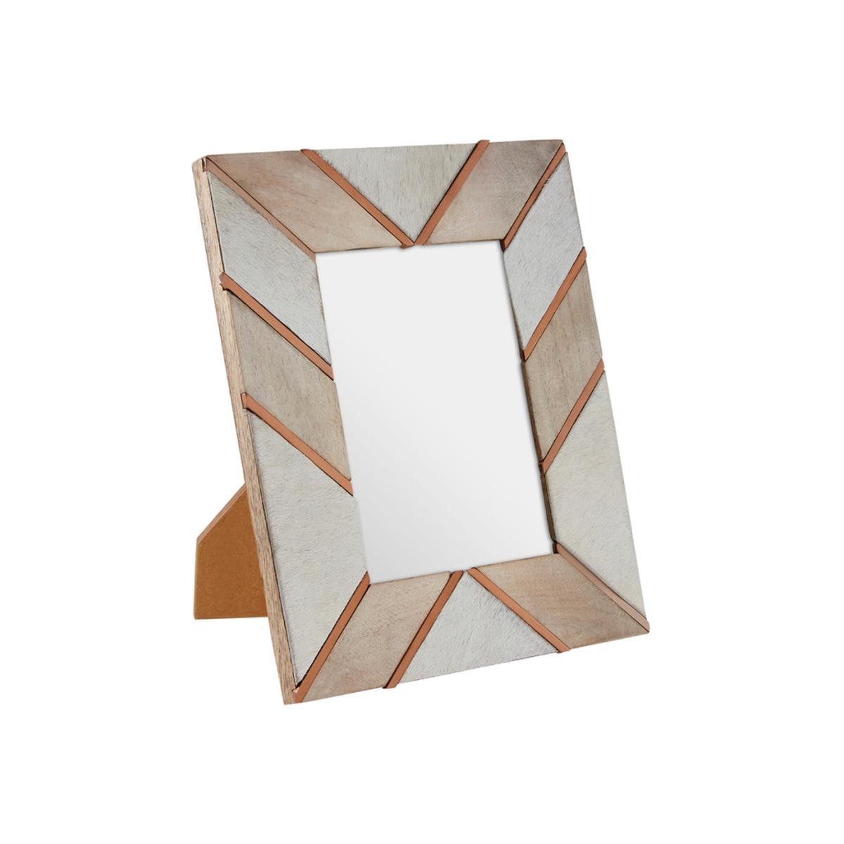 Why not display your photos in a photo frame with a difference with this cowhide and mango wood frame featuring a copper finish? The texture and style of this photo frame make it the perfect way to display your photos. It will complement many interior settings but especially a farmhouse-styled home or country cabin interior. With tactile cowhide pieces integrated with mango wood, this photo frame has a parquet-style appearance and will look great in many rooms in your home. This quirky cowhide and mango wood photo frame is 28cm high, 22cm wide and 30cm in diameter (7" x 5"). *Moot Trading Ltd is not a lender and acts only as an introducer. The credit product is provided by Klarna Bank AB (publ). Credit is only available to permanent UK residents aged 18 and over, subject to status. Terms and conditions apply. Please note that the following products are not regulated by the FCA: Pay in 30 days and Pay in 3 instalments. Read More.