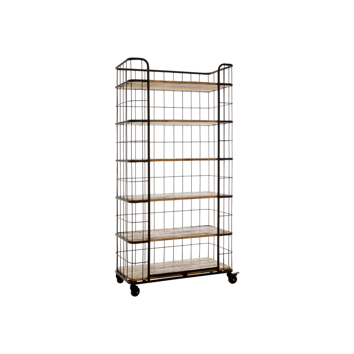 Its six shelves are made from renewable mango wood and offer an earthy contrast to the black iron wire structure that wraps around them. The shelves have a four panel configuration and have a golden colour and rich grain. Braked castor wheels at the base Dimensions: H: 189 x W: 50 x D: 95 cm Materials: Iron, Wood Assembly Required: No Care Instructions: Please note, This product composition contains natural wood, variations in colour may apply.